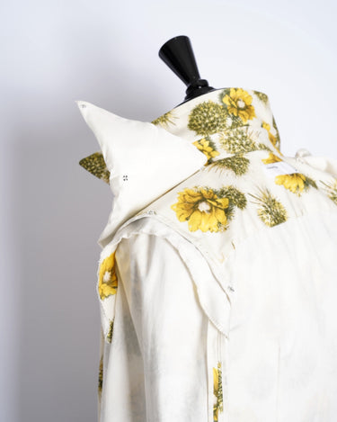 ・肩パッド入りの構築的なテーラージャケットのシルエットでシャツに仕上げた、ハイブリッドなアイテム。