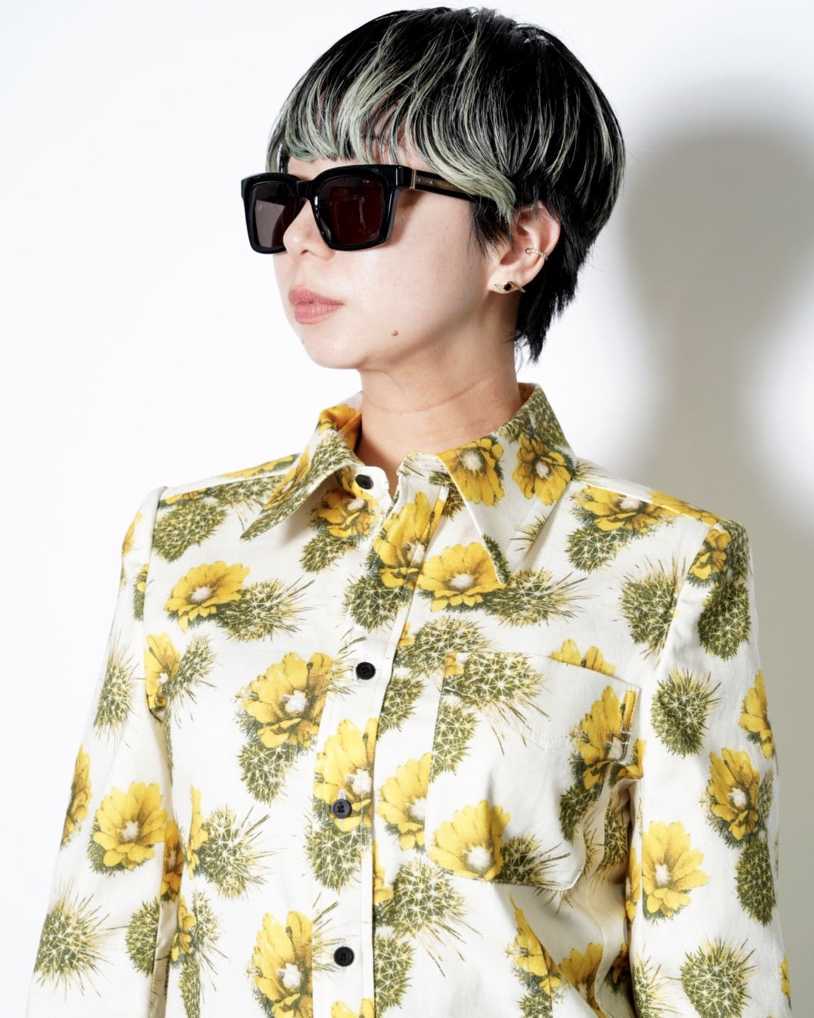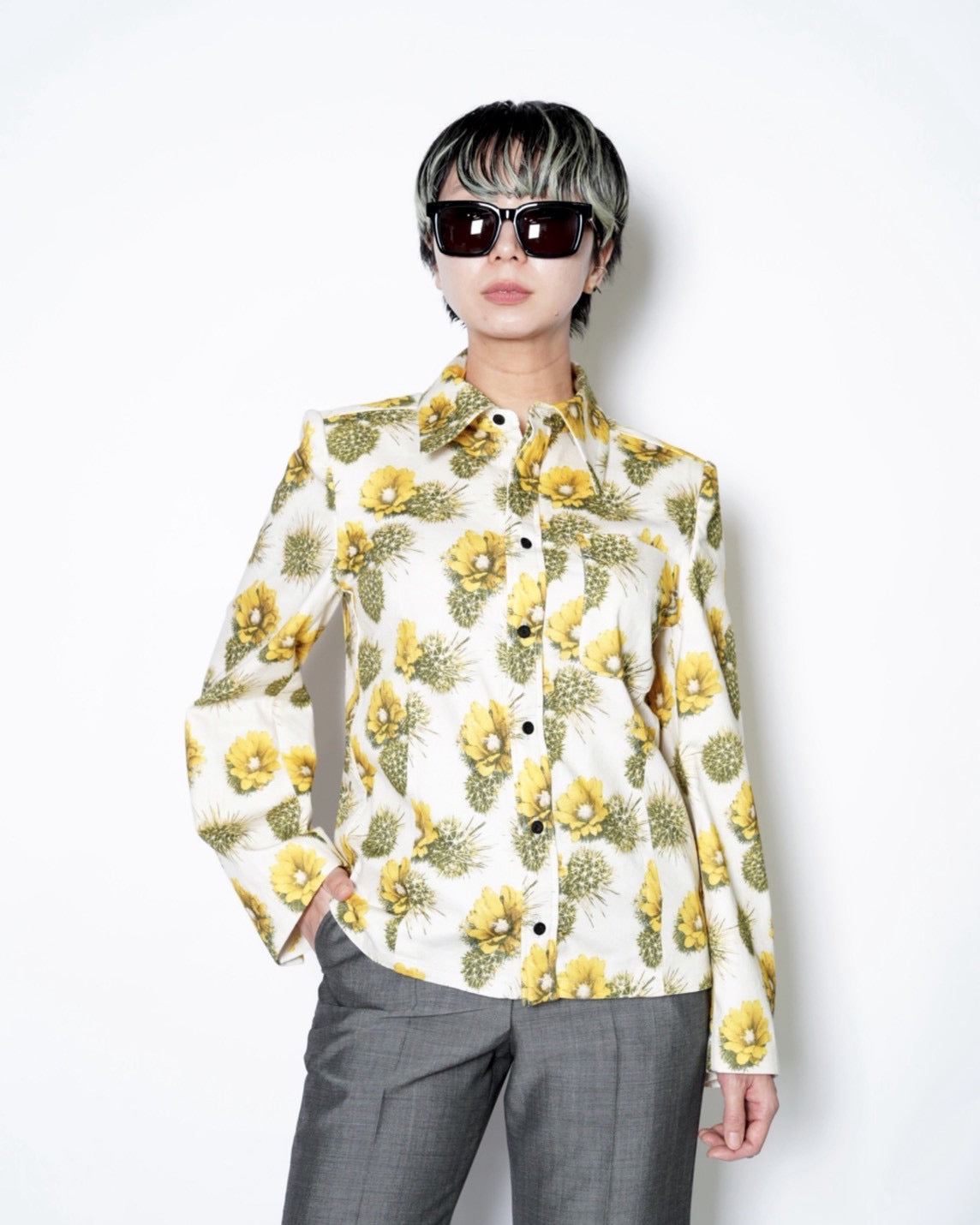 ・構築的な肩のラインでモードな印象持っており、軽くなり過ぎずないシャツとなっています。