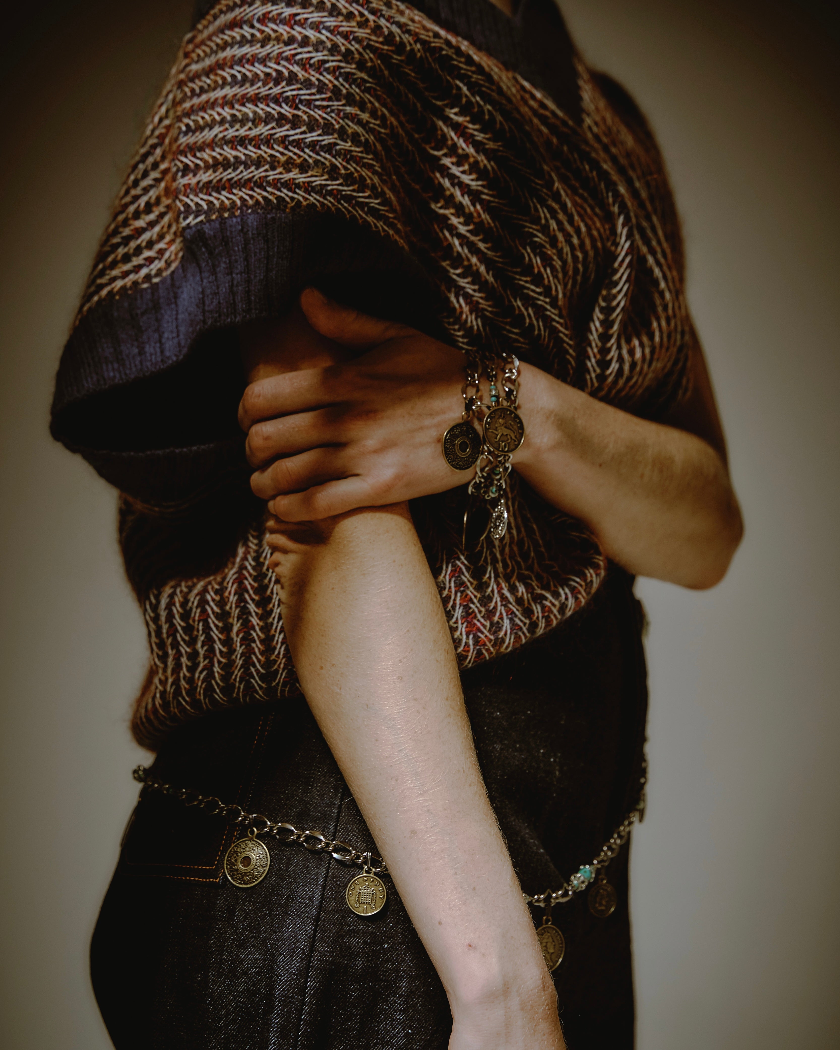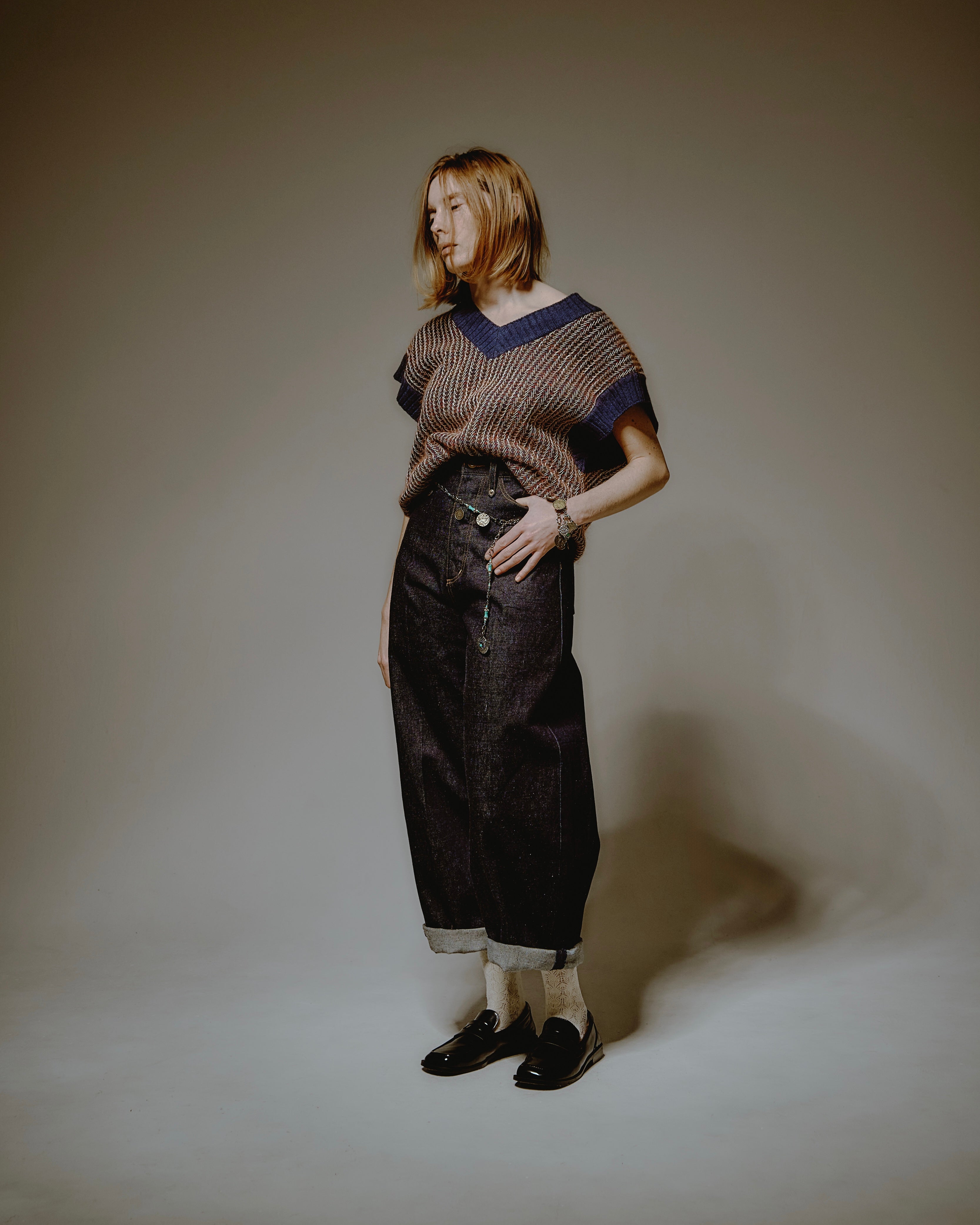 ・絶妙なブルーとブラウンの2色展開。それぞれが持つ温度と質感の違いが、硬さと柔らかさ、冷たさと温かさ、すべてが交差しながら、一枚のニットに落ち着く。