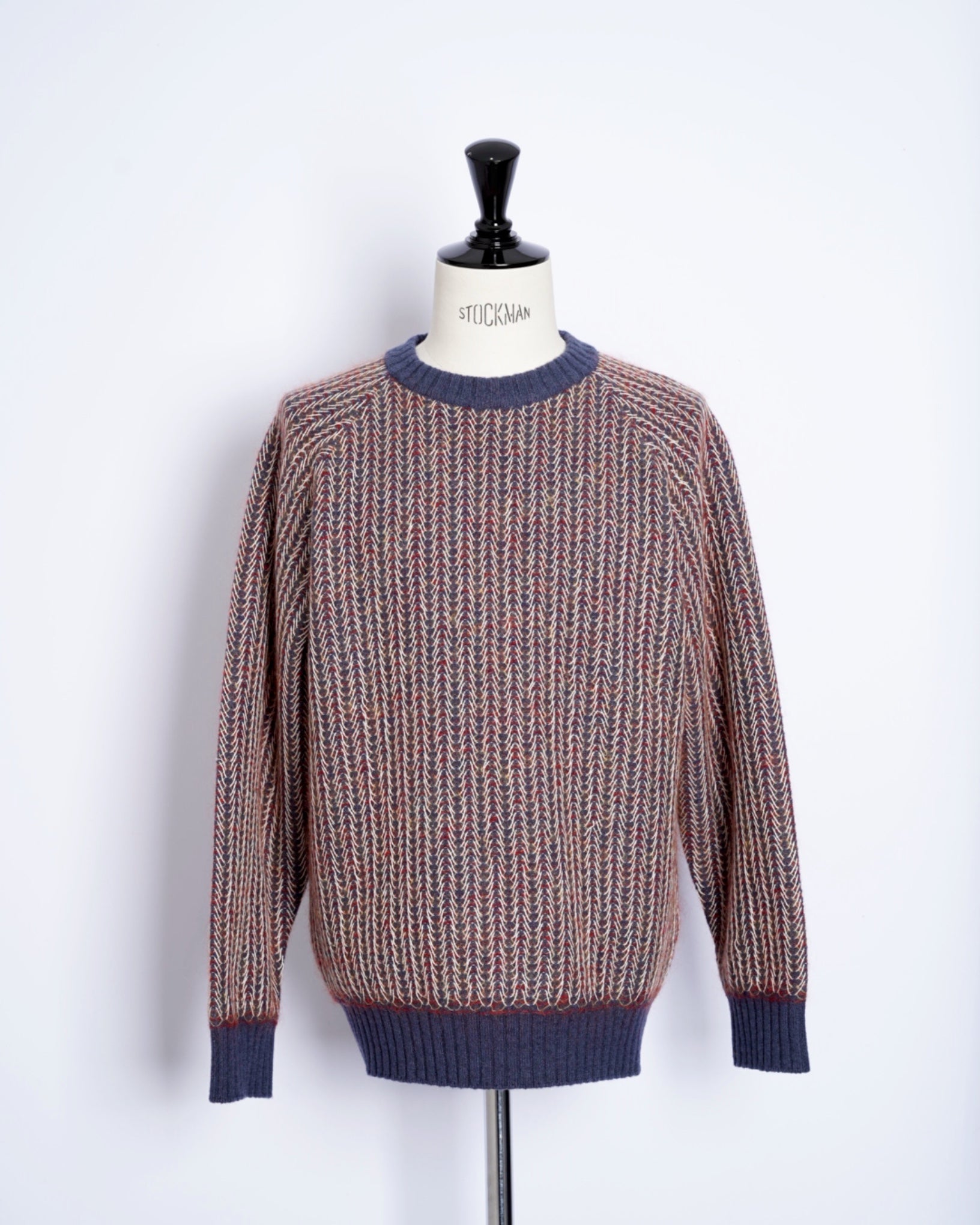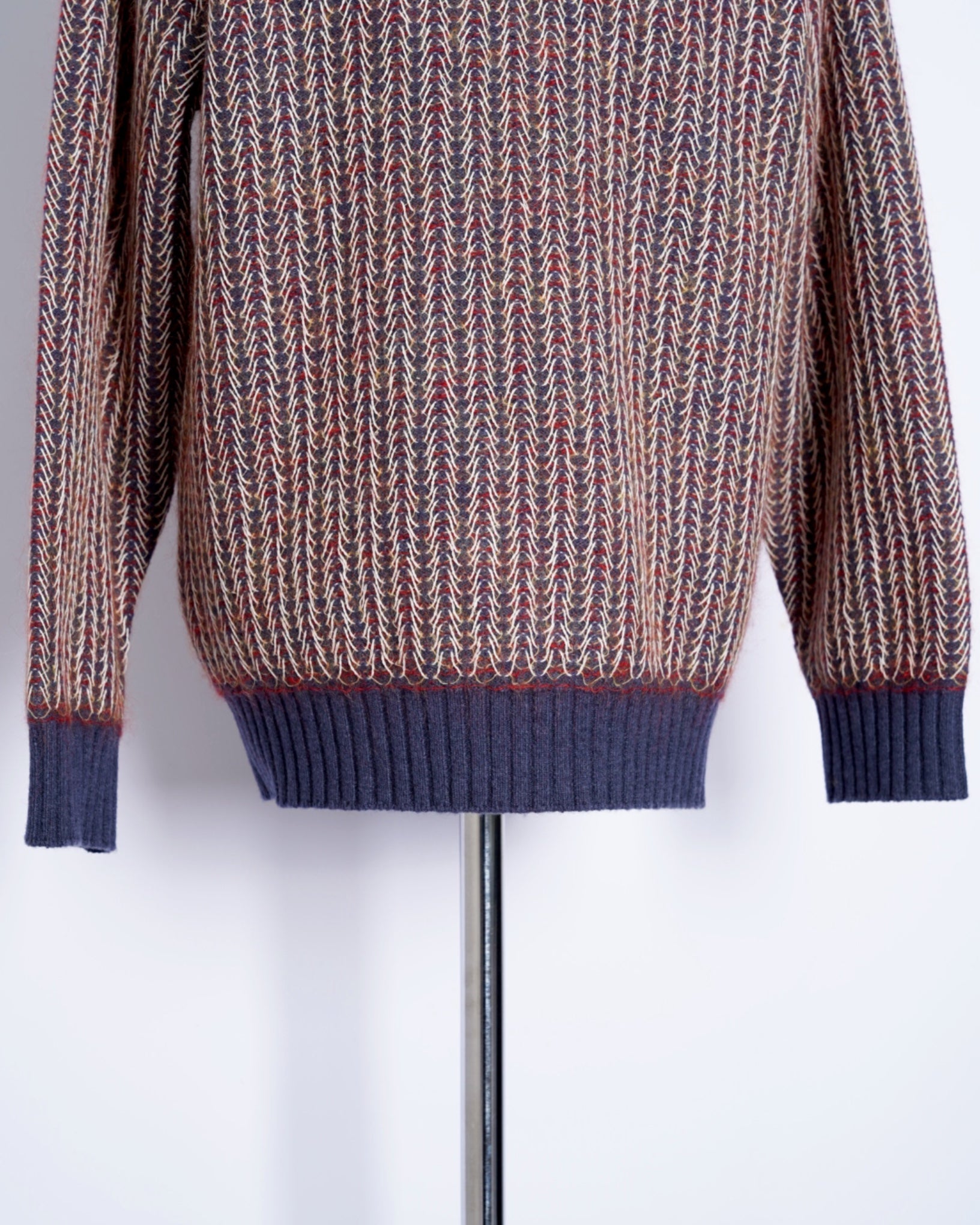 ・フィッシャーマンニットの重厚なシルエットをベースに、3種類の糸を巧みに操る職人