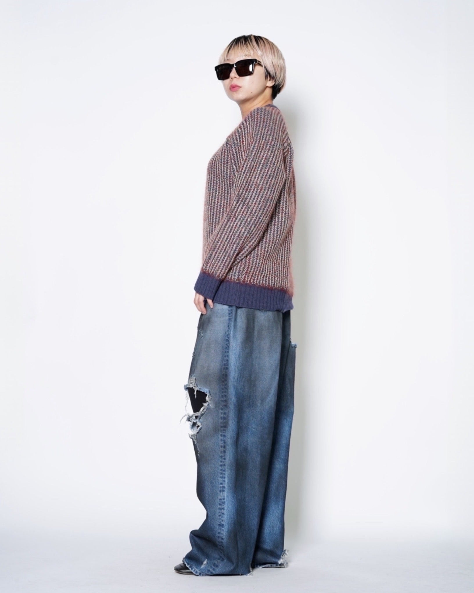 ・絶妙なブルーとブラウンの2色展開。それぞれが持つ温度と質感の違いが、硬さと柔らかさ、冷たさと温かさ、すべてが交差しながら、一枚のニットに落ち着く。