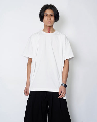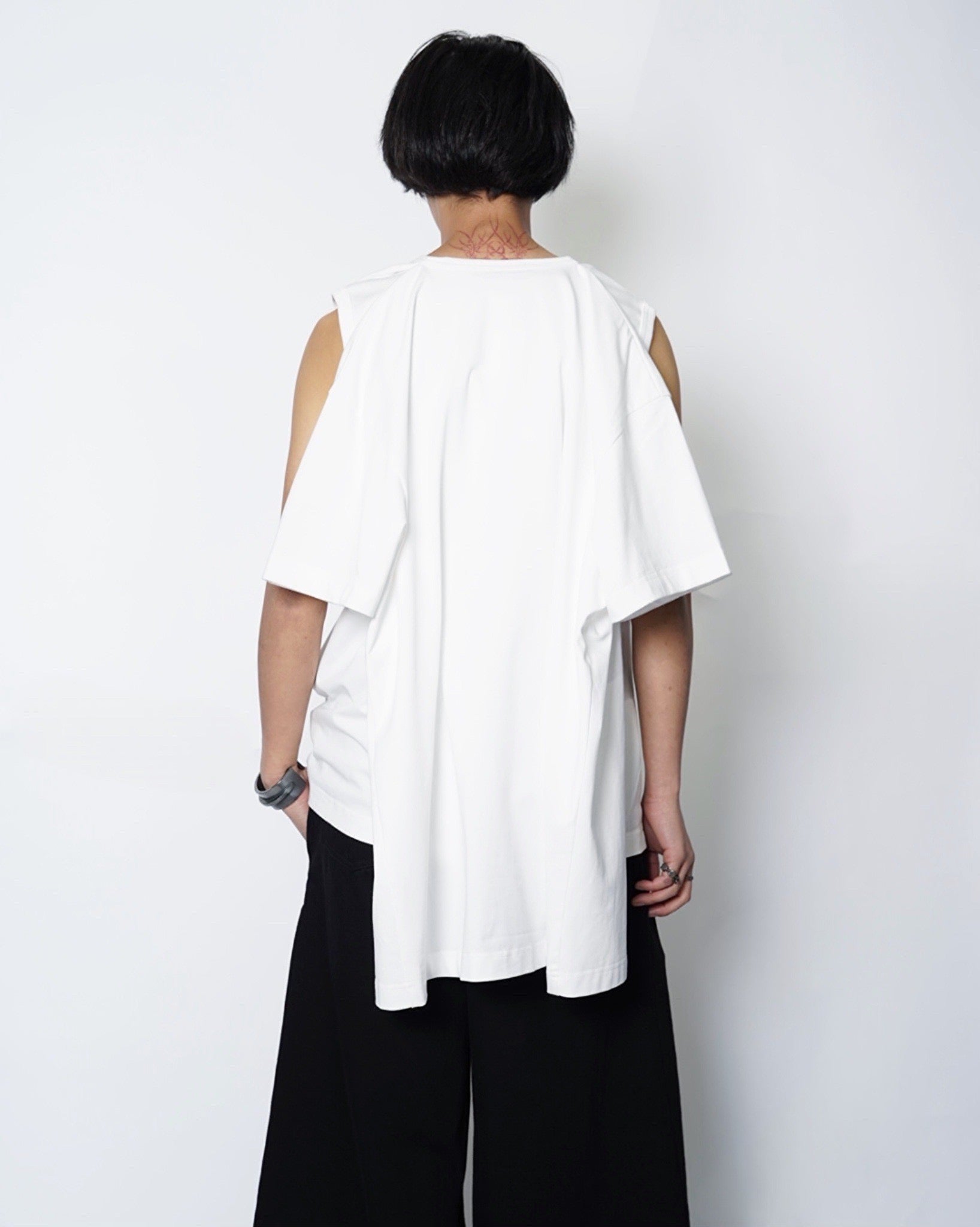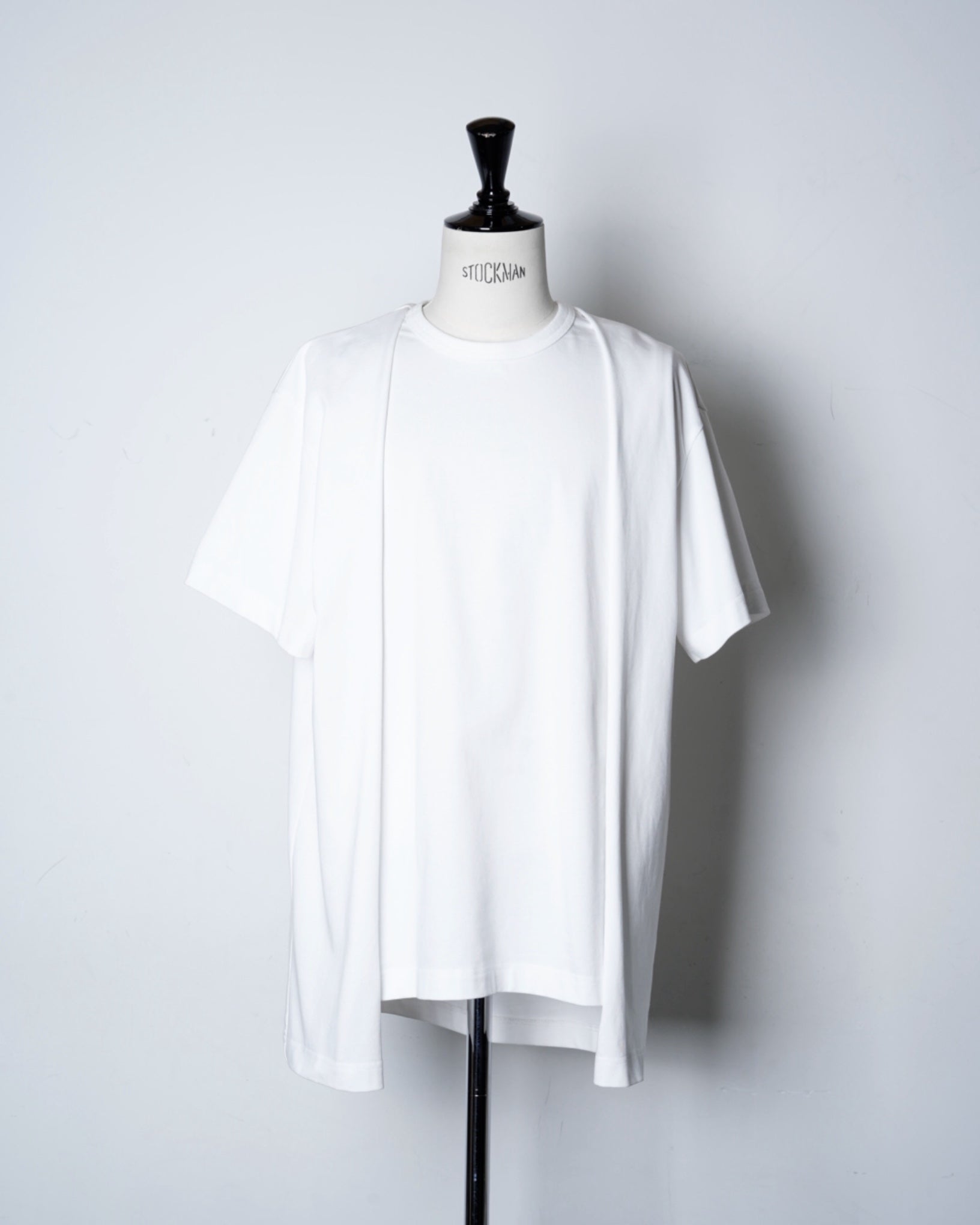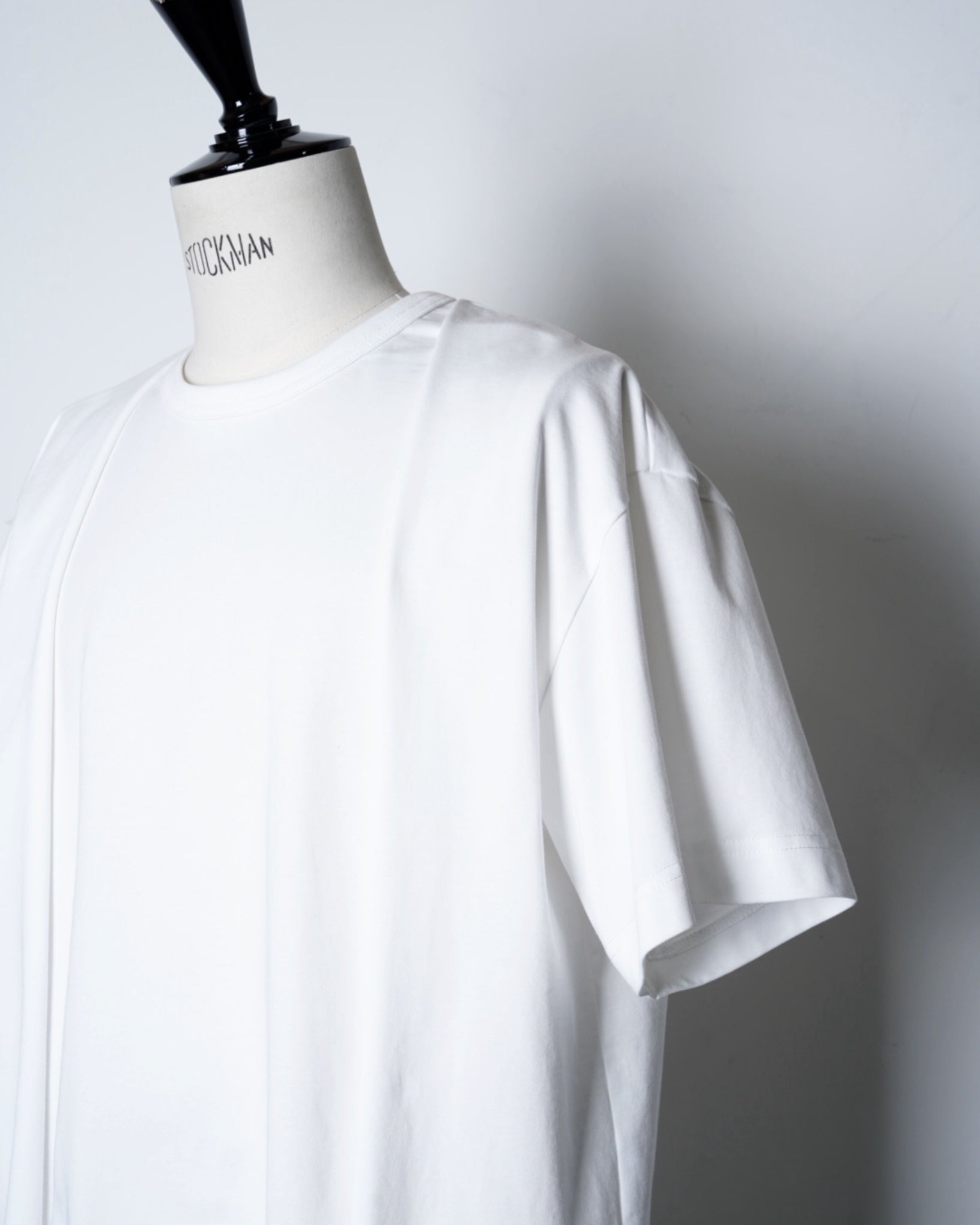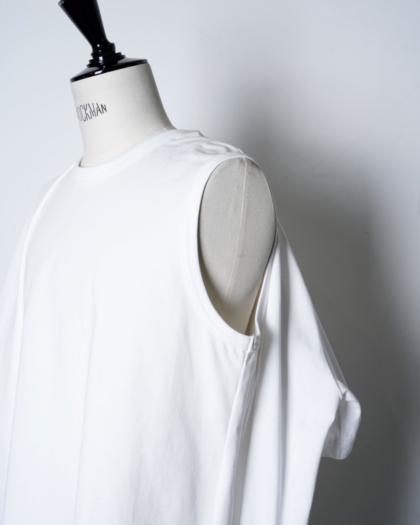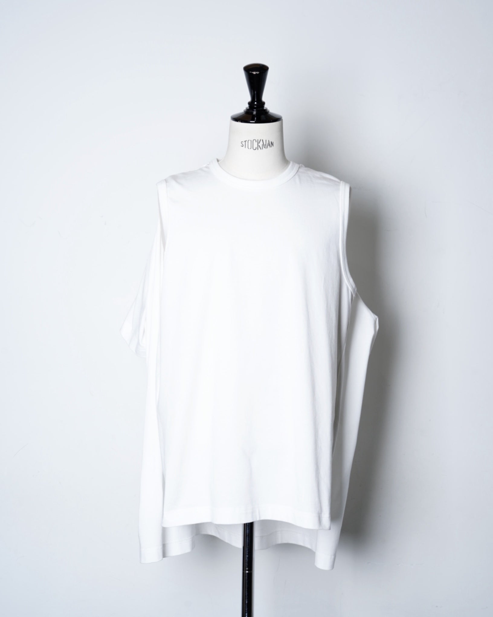 ・コットン天竺を使用し、ノースリーブとTシャツを一体化させたレイヤードデザイン。