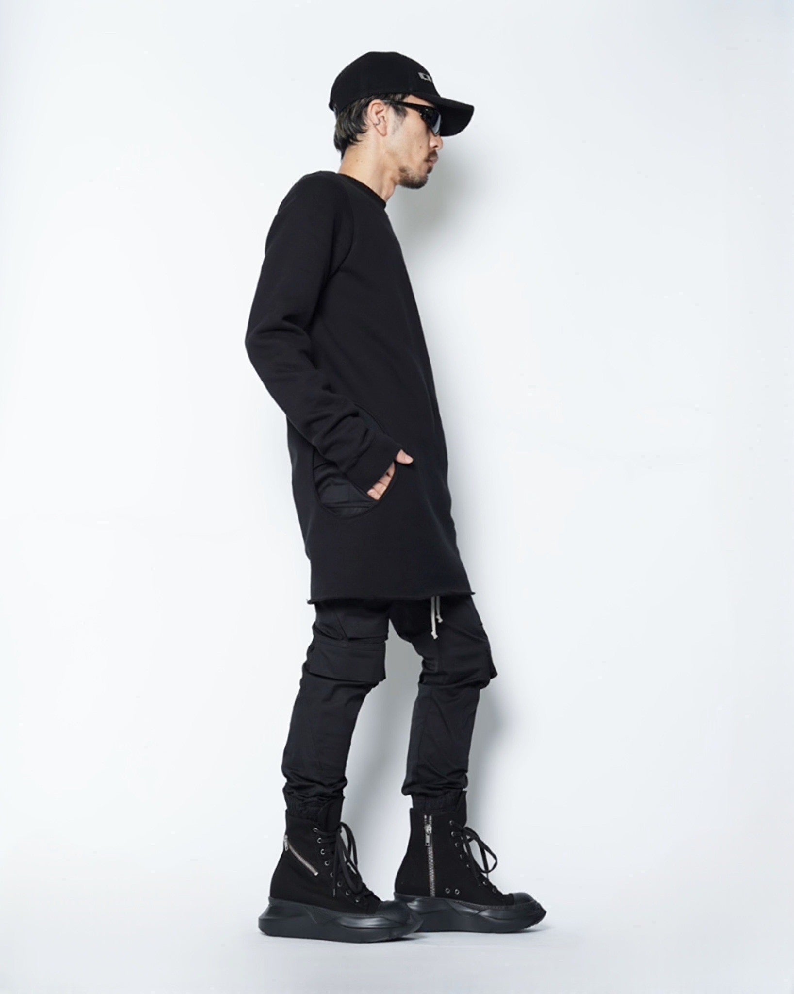 ・DRKSHDWらしいカジュアルで柔らかなニュアンスのスウェット素材、"F"を採用。