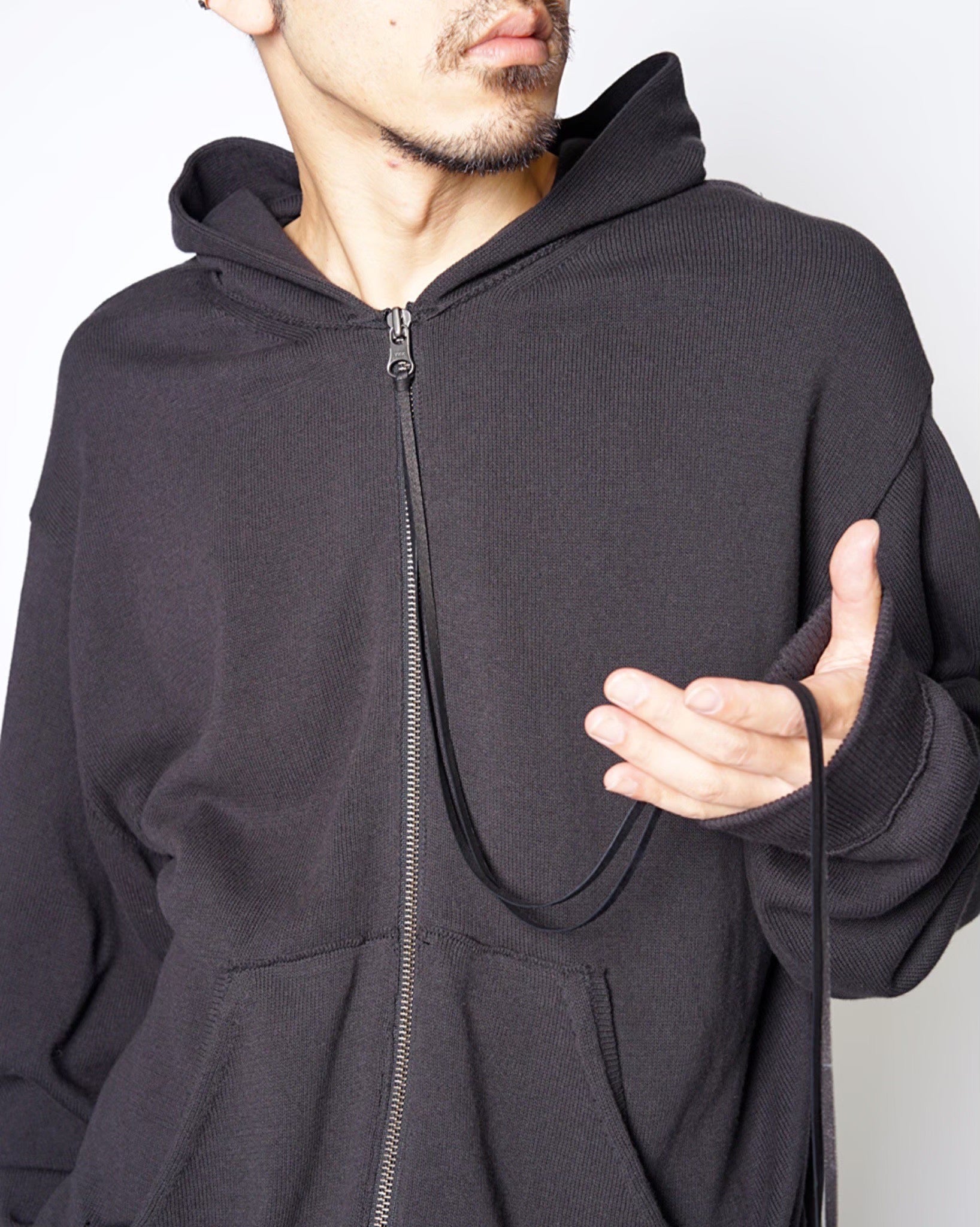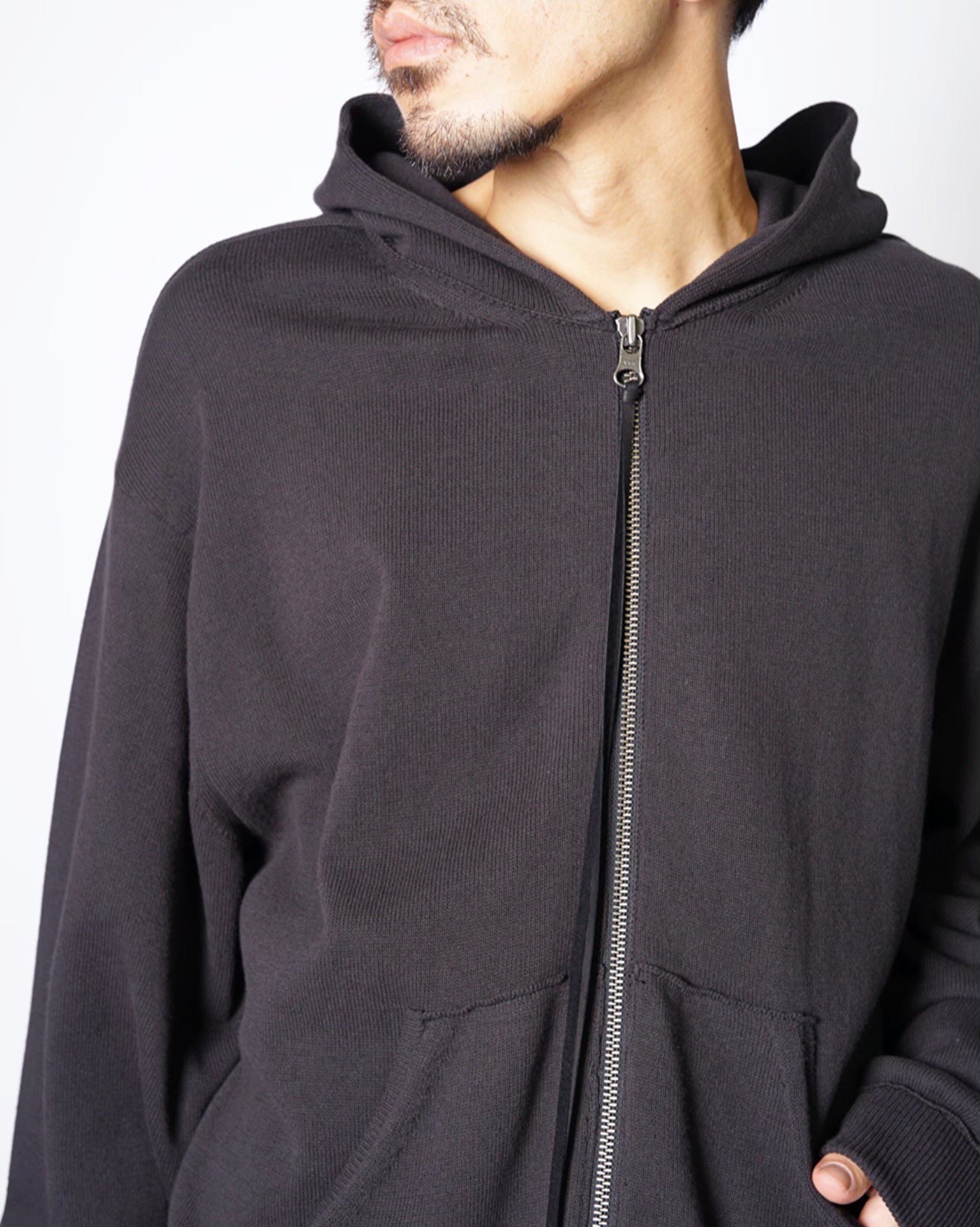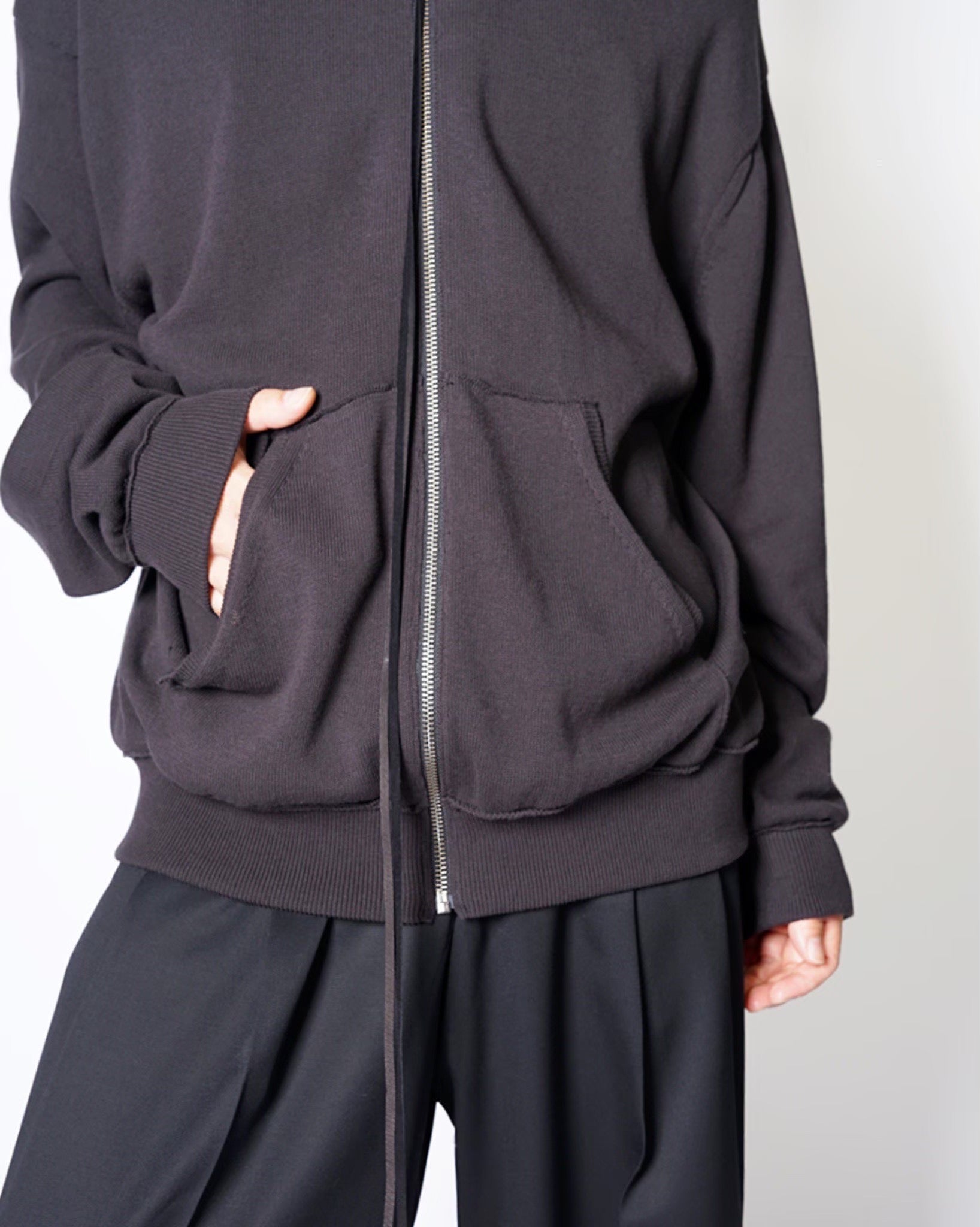 ・スウェットであることがほとんどのフルジップパーカーですが、敢えてニッティングで作り上げることで柔和な表情のあるデザインに。