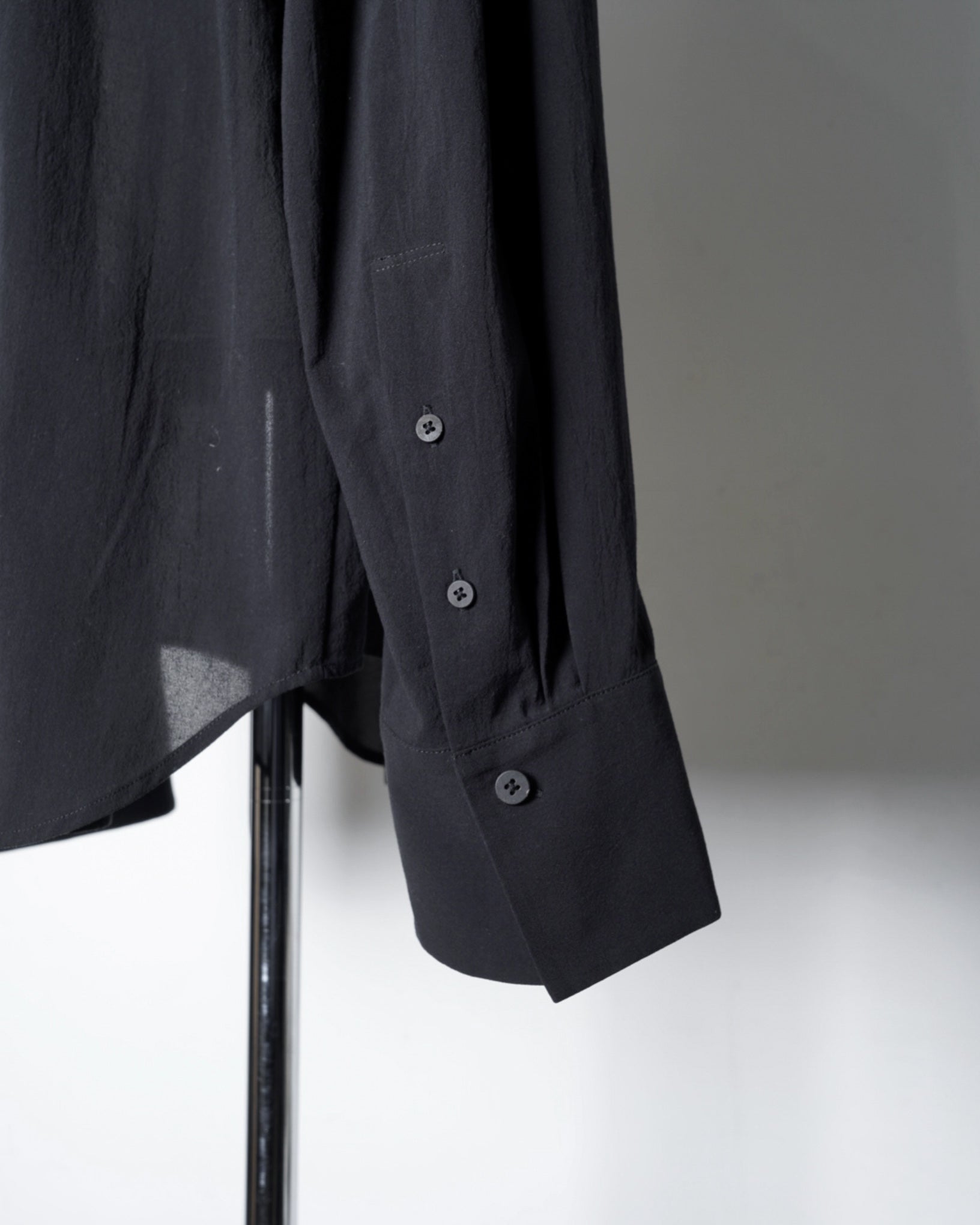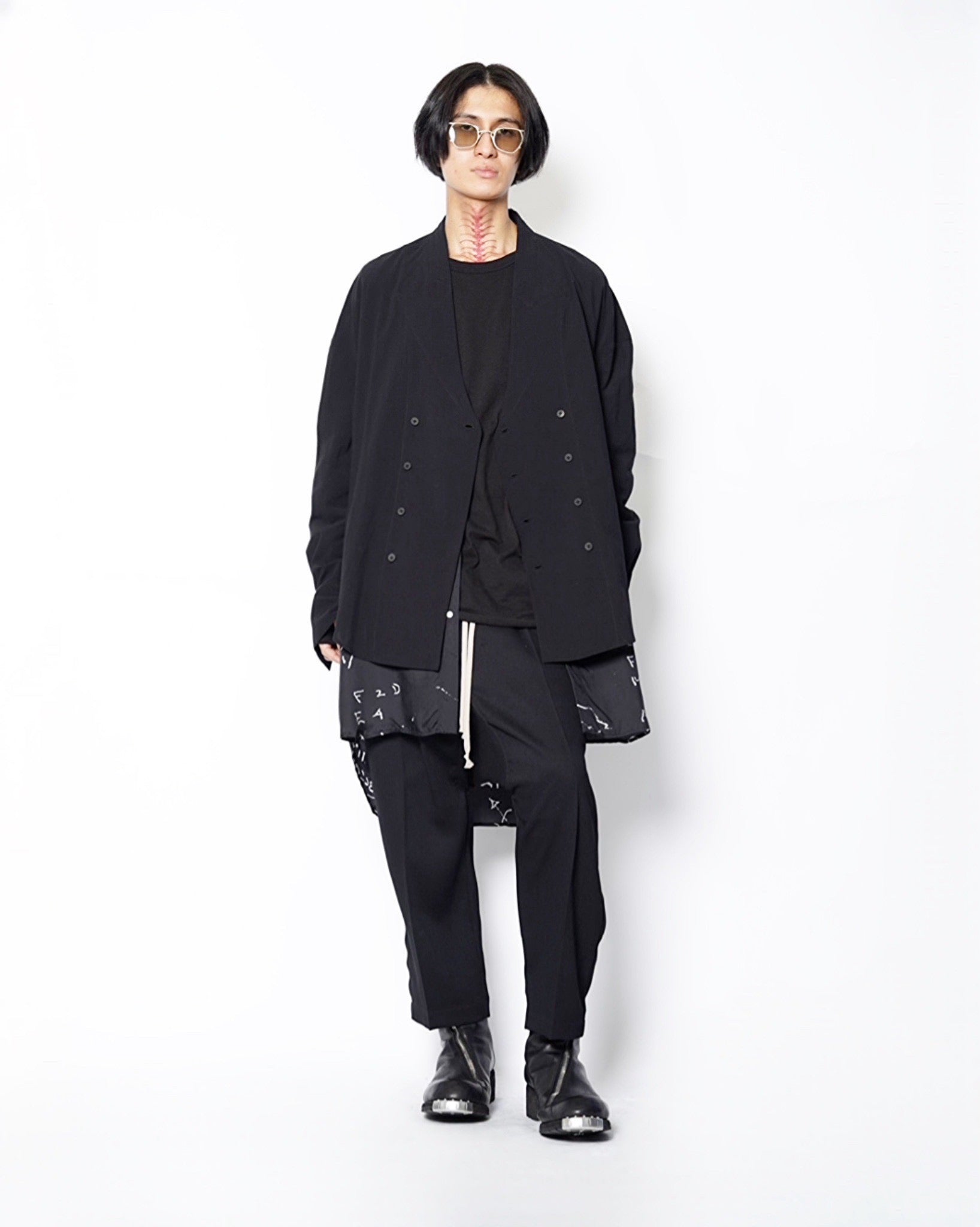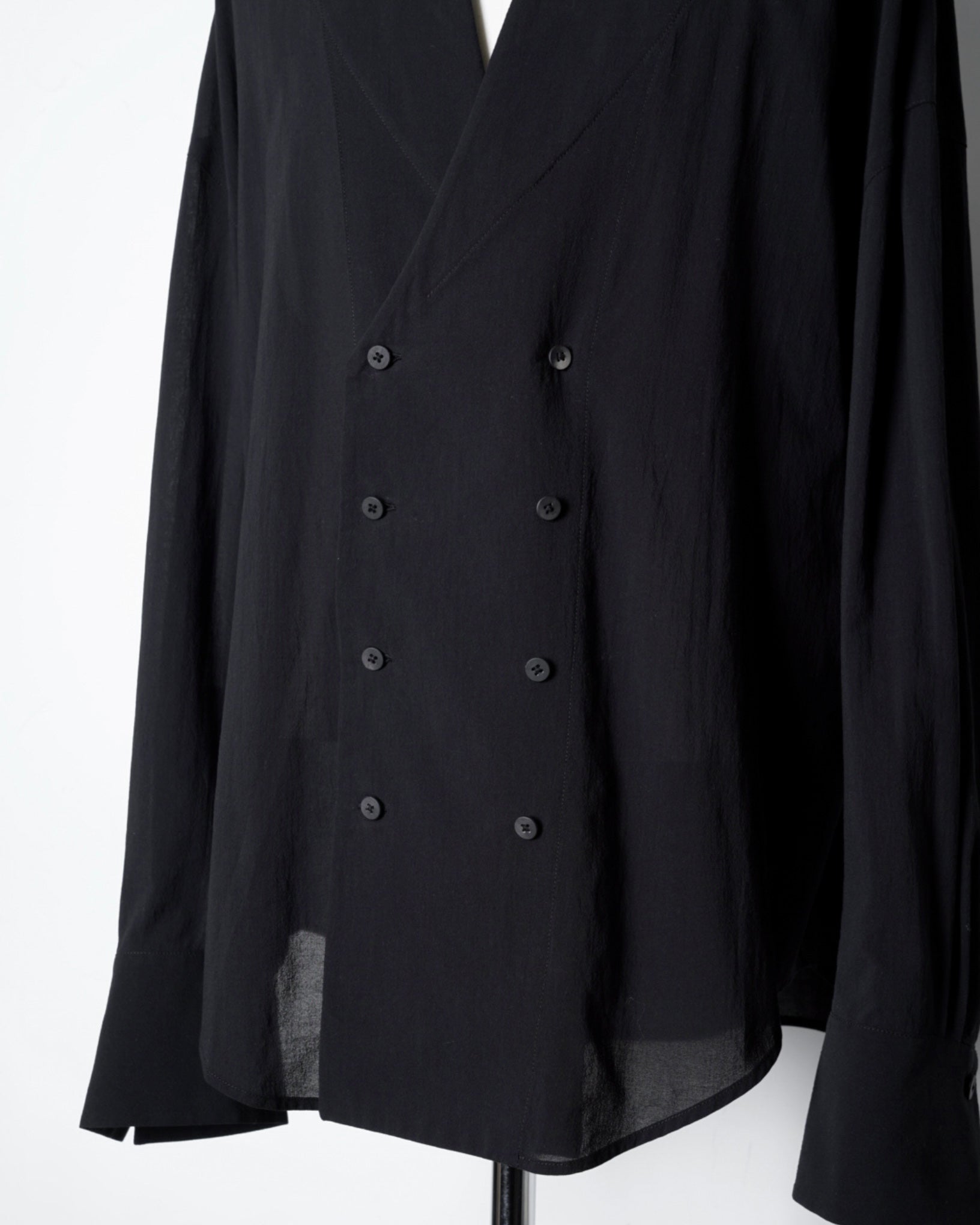 ・ダブルブレストの意匠をシャツで表現したデザインながら、クラシカル過ぎないフォルムと程よく構築感のあるアウトラインを作っていることで端整に整った仕上がりです。