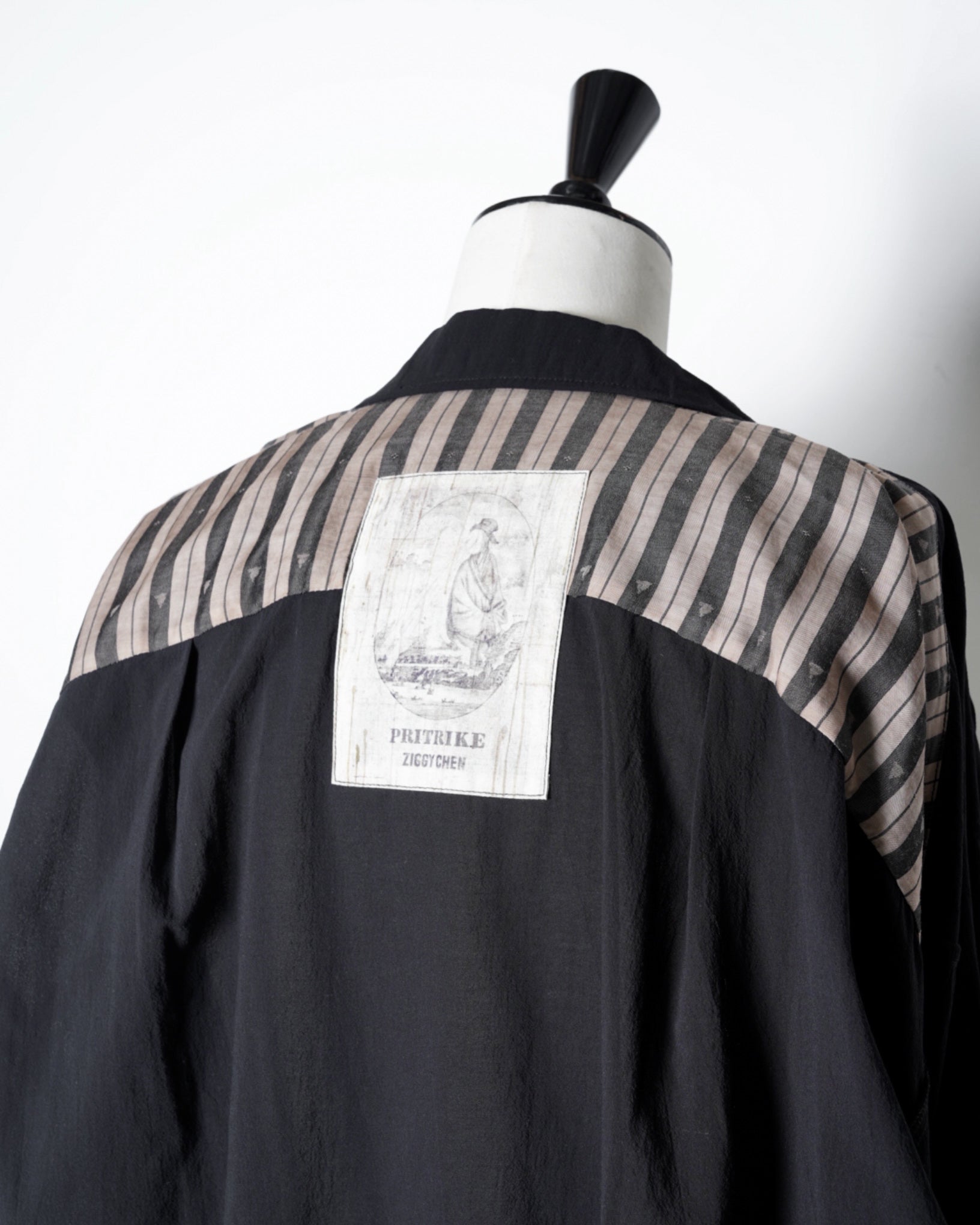 ・ヨークの裏地には染色が施された趣深い織り柄のキュプラサテンを使用し、見えない部分ながらZIGGY CHENらしいこだわりを落とし込んでいます。