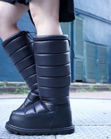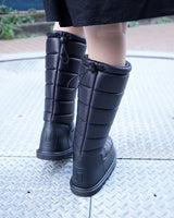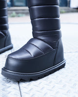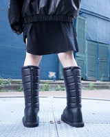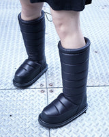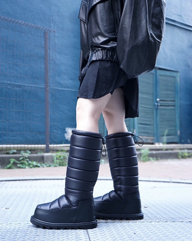 ・中綿の詰まった冬仕様のデザインで保温性が確保されていながら、シックでクールに引き締まった雰囲気が魅力の一足に。