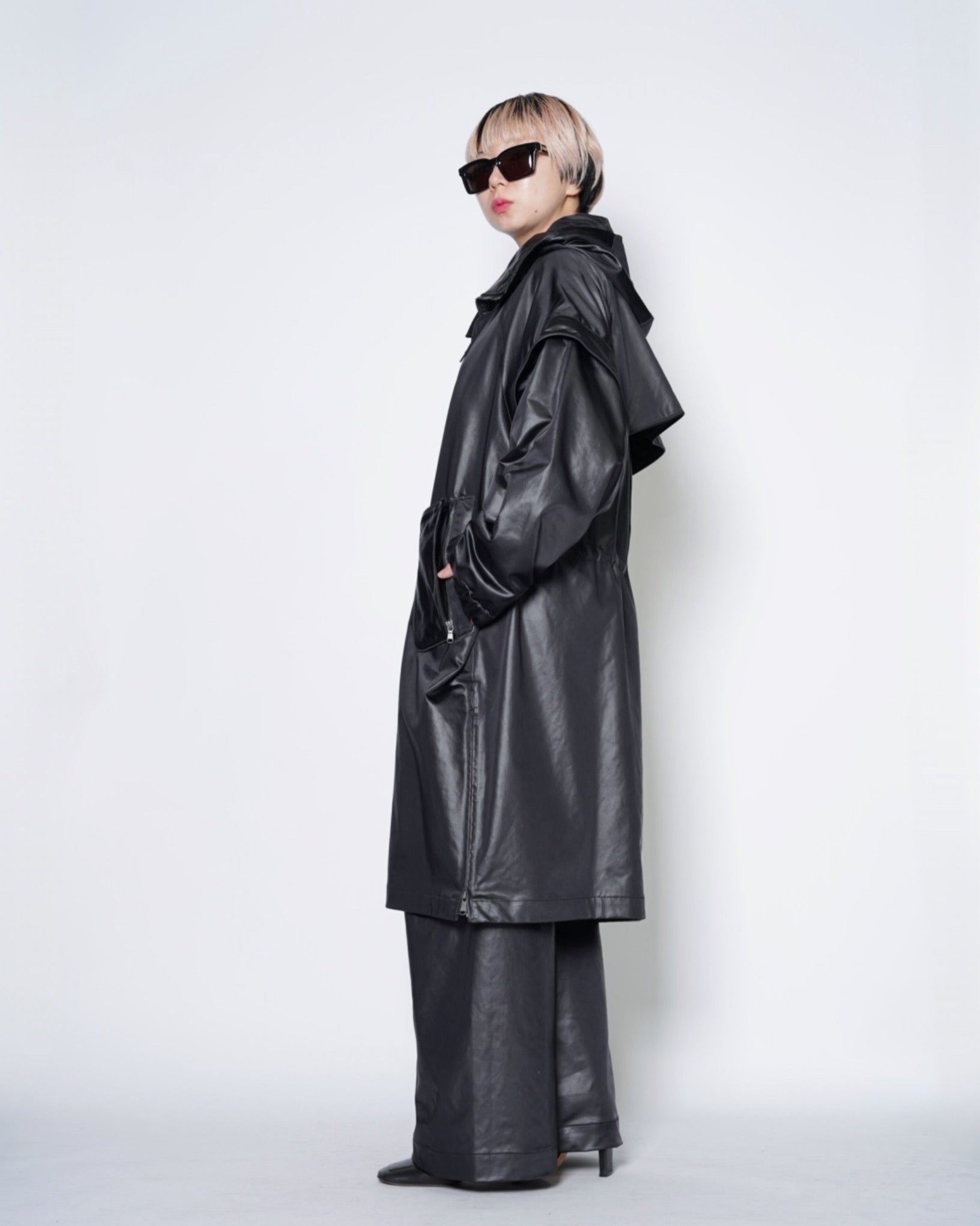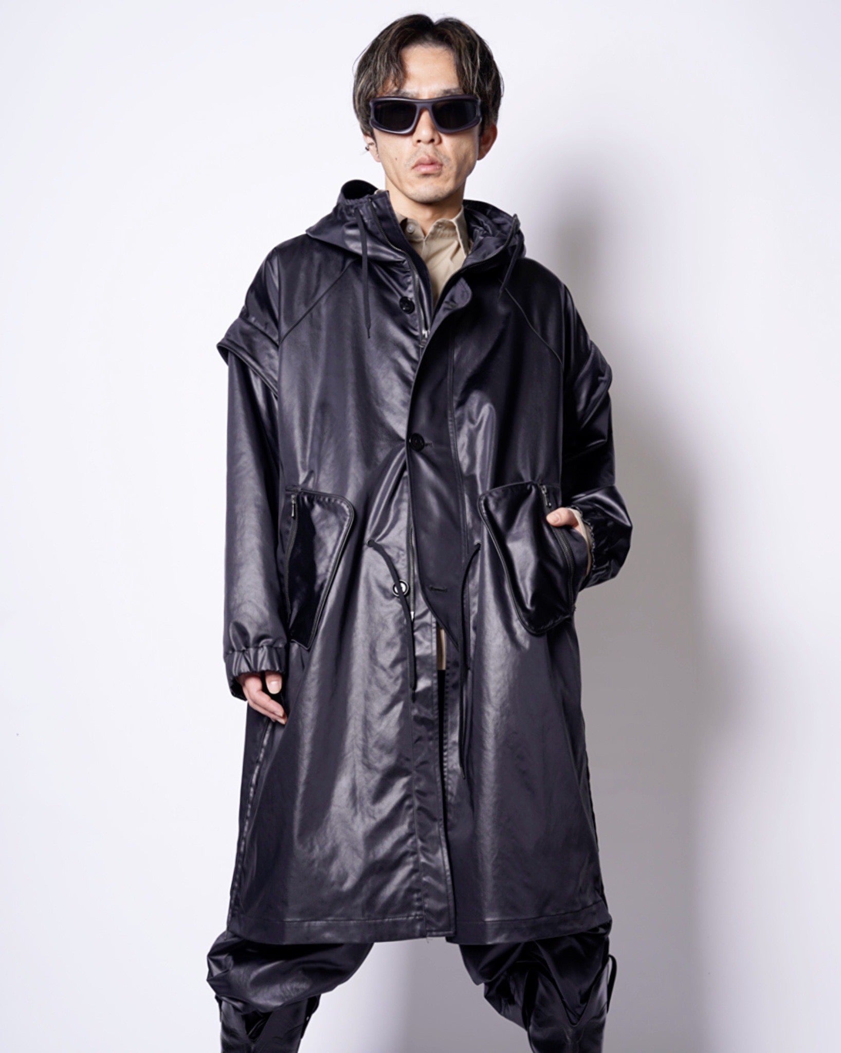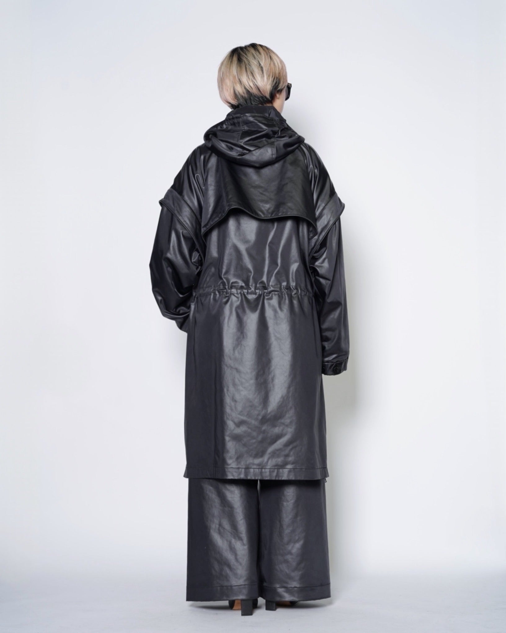 ・ヴィンテージレザーのような質感が特徴的なフーディーコート。