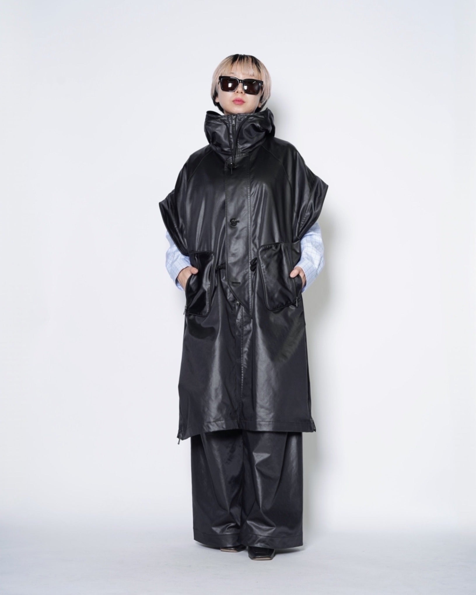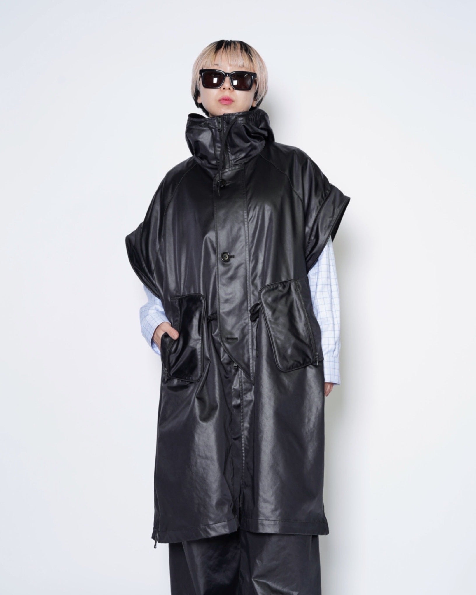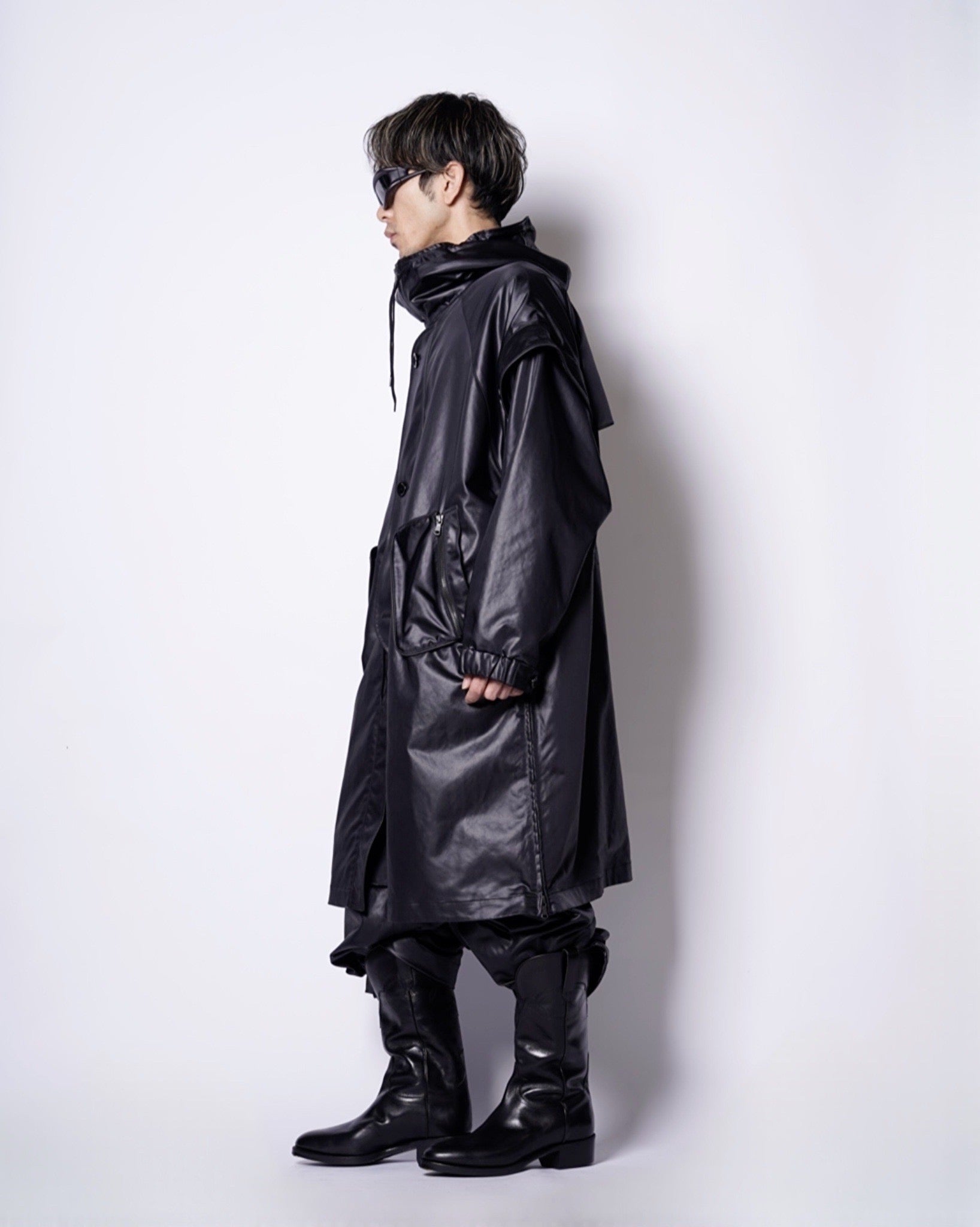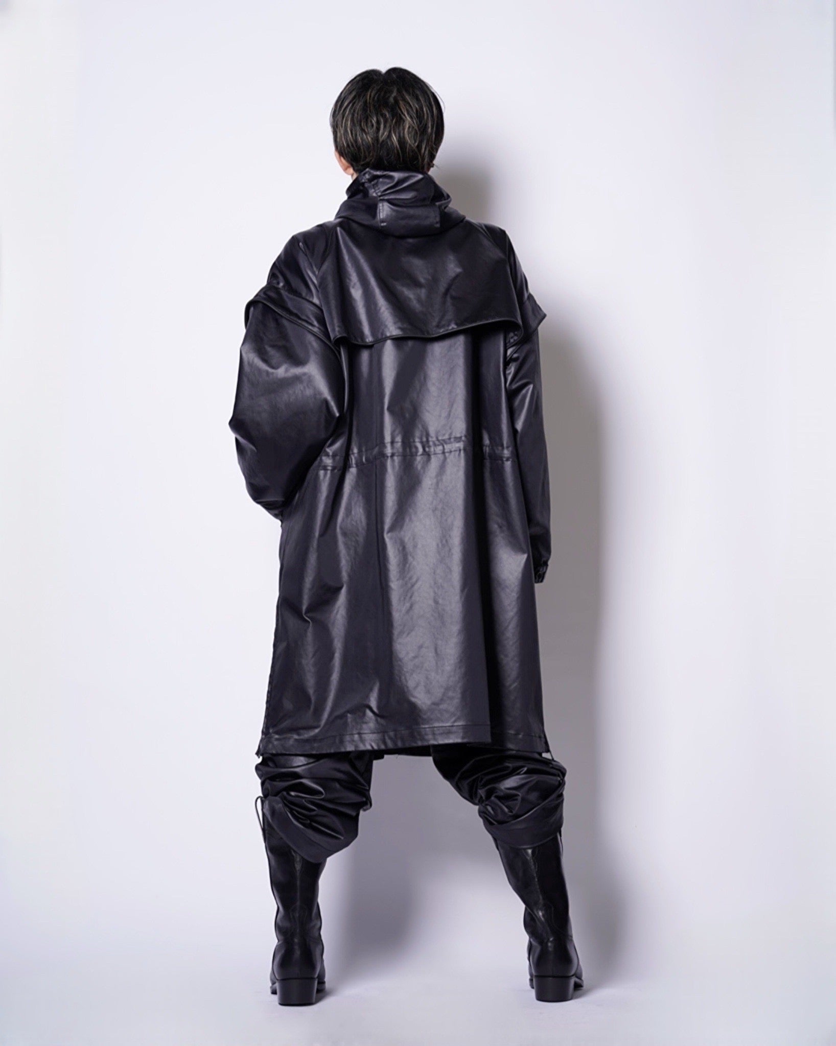 ・熱加工により重厚な表情を生み出しつつ、撥水性を備えた高機能素材でモードと実用性を融合させた佇まいが魅力。