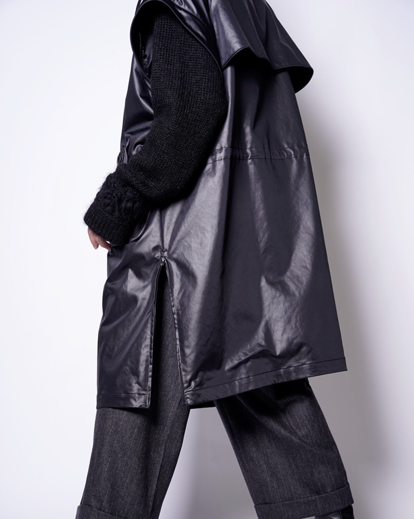 ・脇のファスナーを開けるとスリットが生まれ、レイヤードに奥行きとアクセントを加えます。