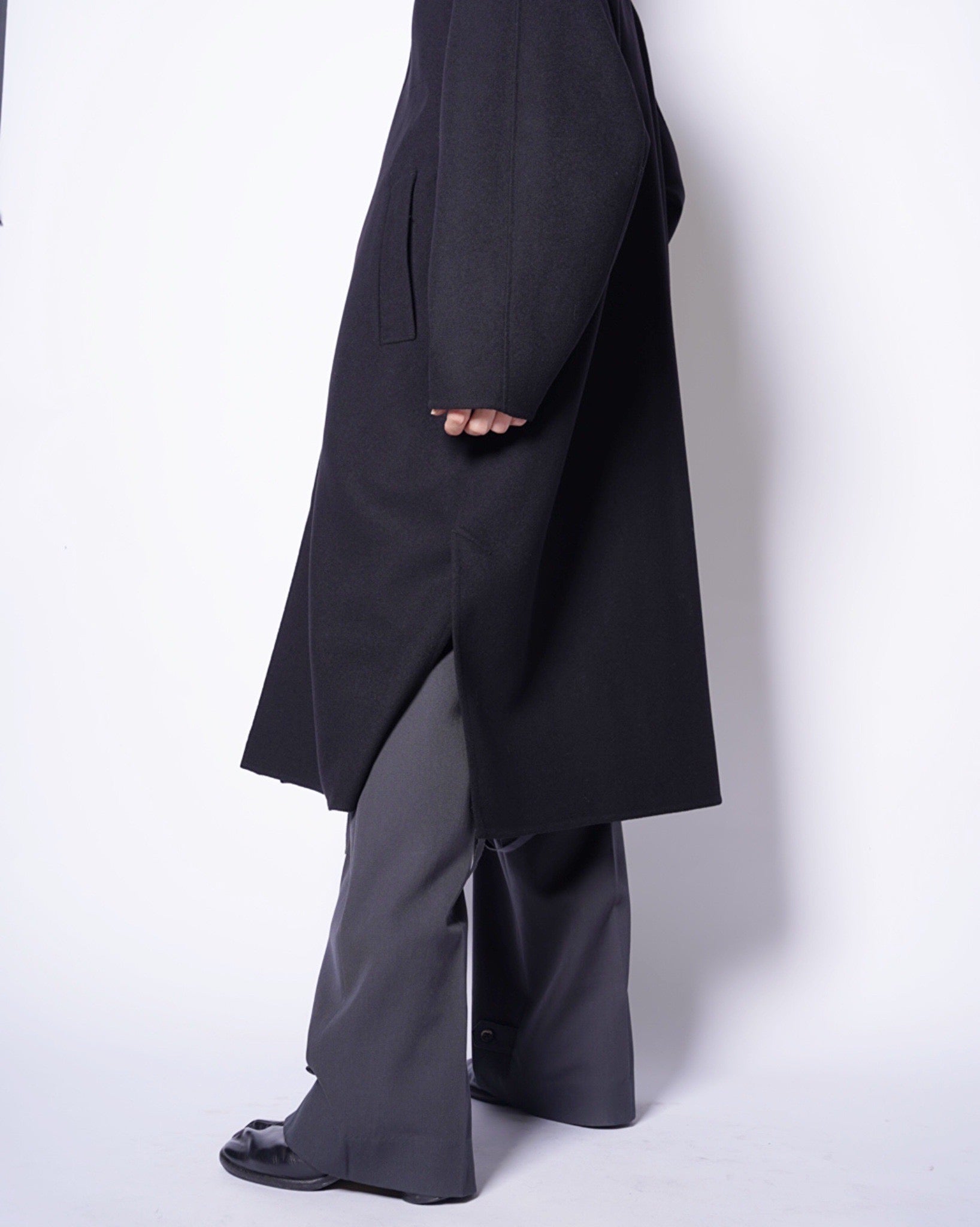 ・包み込むようなゆったりとしたボリュームを直線的なラインで設計することで、着用時に余った分量が程よいドレープになり、美しいシルエットを生む。