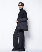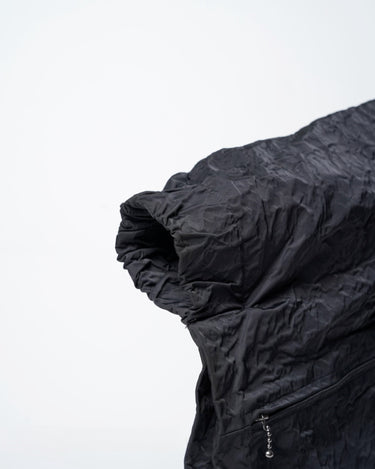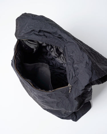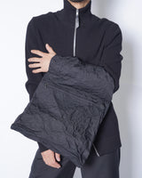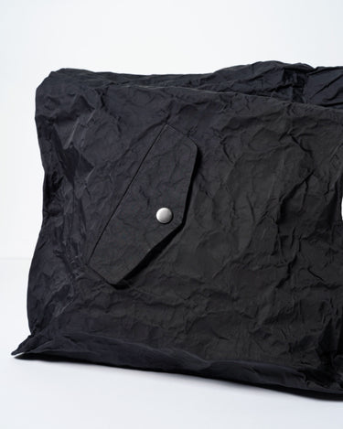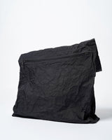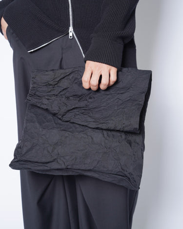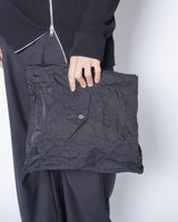 An arm bag that can be changed in shape, using a material with slightly water-repellent polyester fabric on the surface and an aluminum fabric on the back.