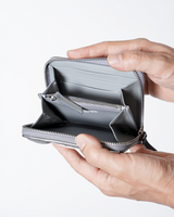 ・ The storage capacity is compact but fulfilling with two compartments and coin pockets by opening and closing zip.
