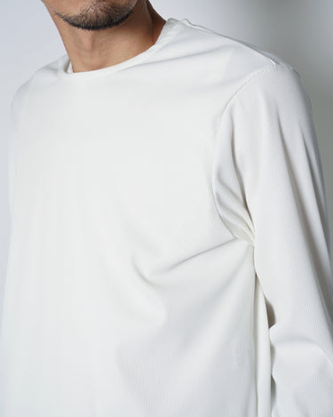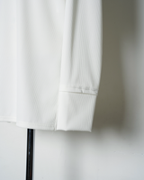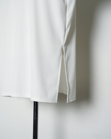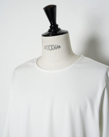 This new material has a shape-stabilizing and kickback performance comparable to the Aqua Rib, a standard fabric for the SS season, but is also created with a thinner ridge and a high density setting.
