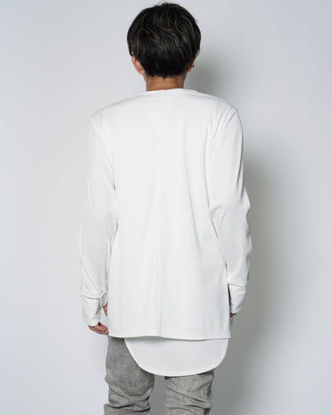 The cuffs are layered in addition to the layered design, and thumb holes are placed and side slits are also included.