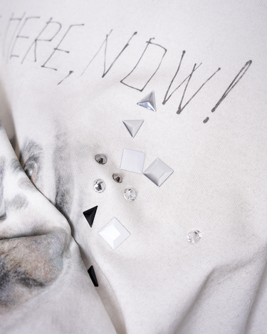 -The harsh damage and texture that seems to have been worn for many years are extremely contradictory, unlike the adorable prints and sticker designs, creating a youthful look and a contrasting finish.