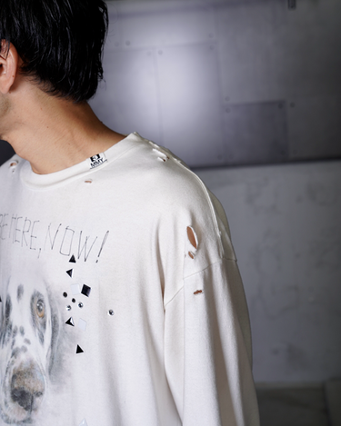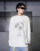 EMBELLISHED DISTRESSED LONG SLEEVES TEE