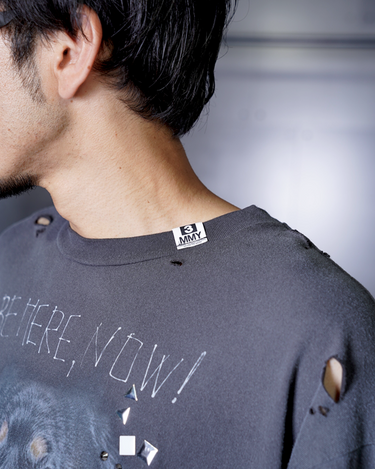 -The harsh damage and texture that seems to have been worn for many years are extremely contradictory, unlike the adorable prints and sticker designs, creating a youthful look and a contrasting finish.