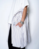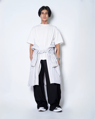 ・シャツを開けた状態で着ることはもちろん、袖を結ぶことで腰に巻いているかのようにも見える2ウェイデザイン。