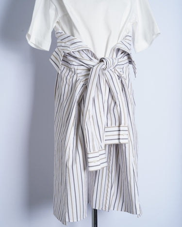 ・Tシャツにシャツをドッキングした、ミハラヤスヒロらしい大胆なドッキングデザインによるドレス。
