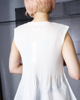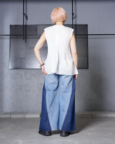 - Pleated front and back provide a comfortable fit with a high-expression texture and elasticity.