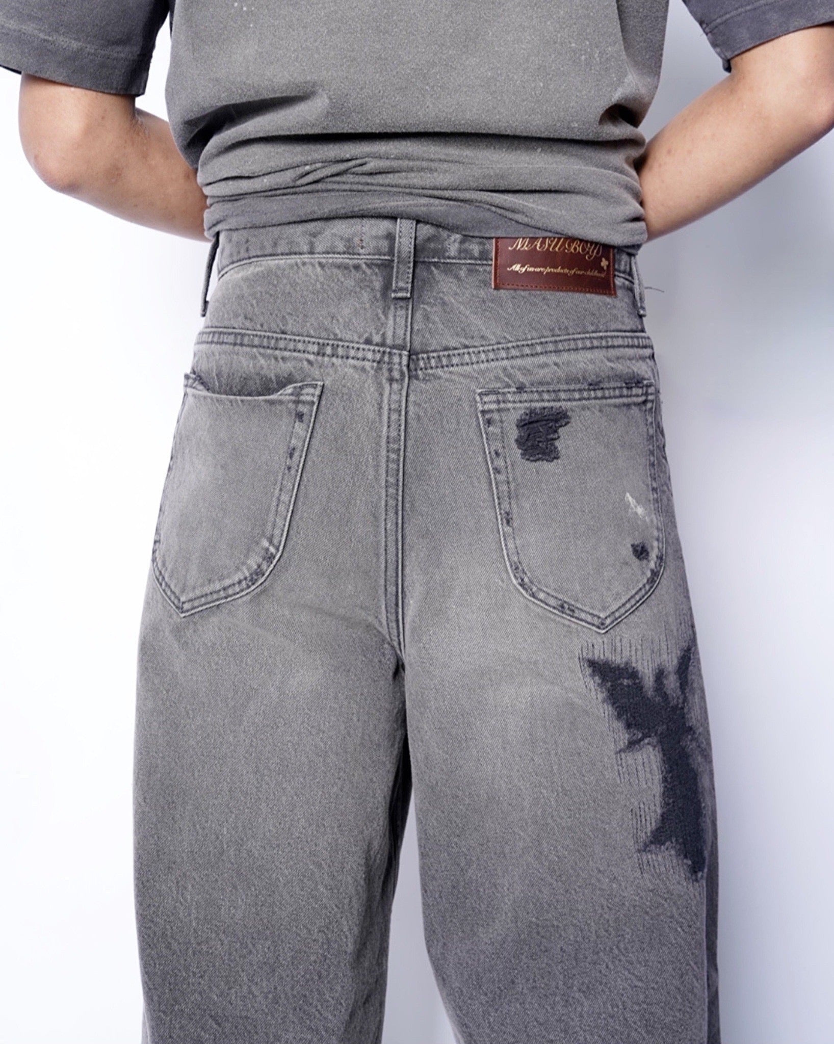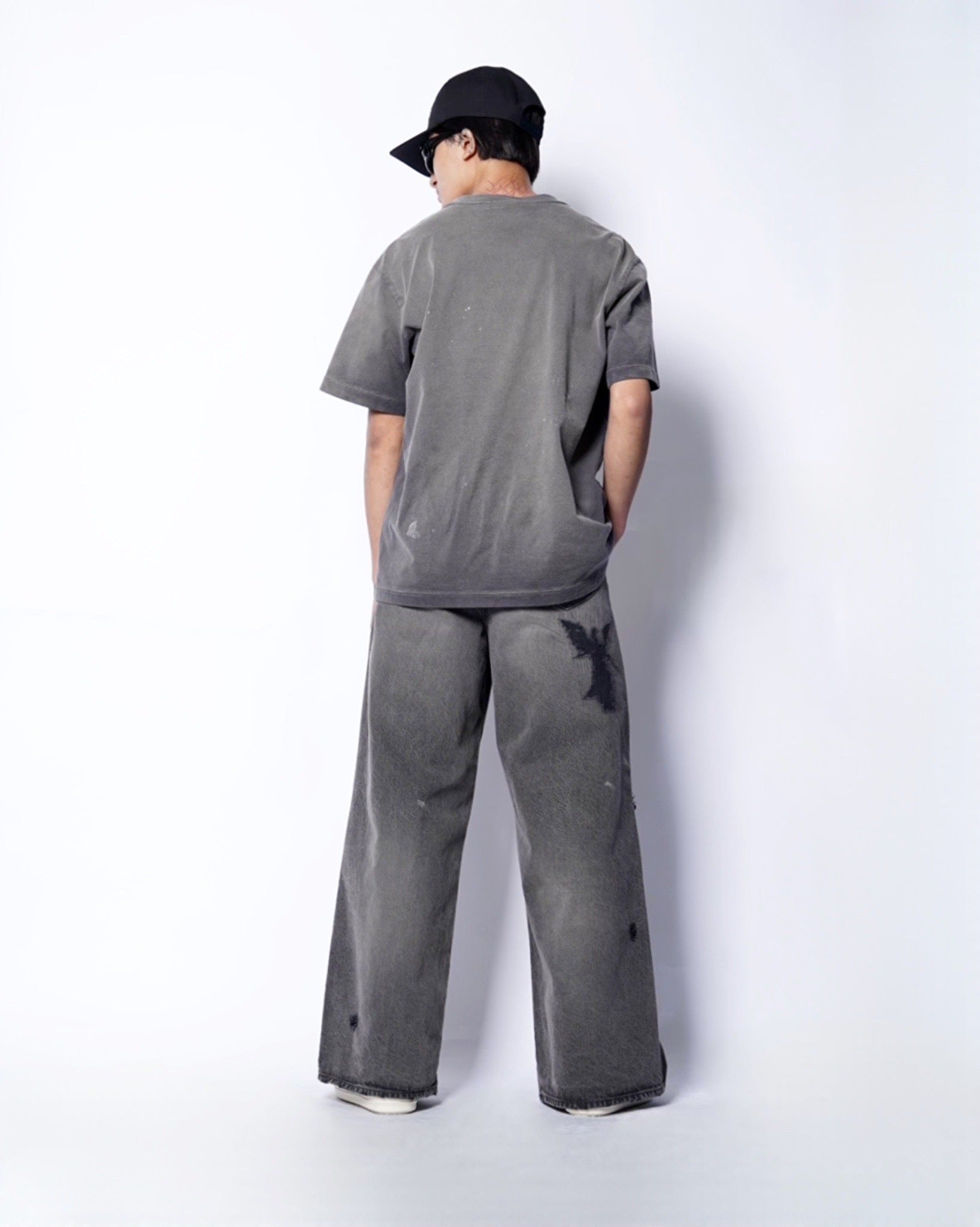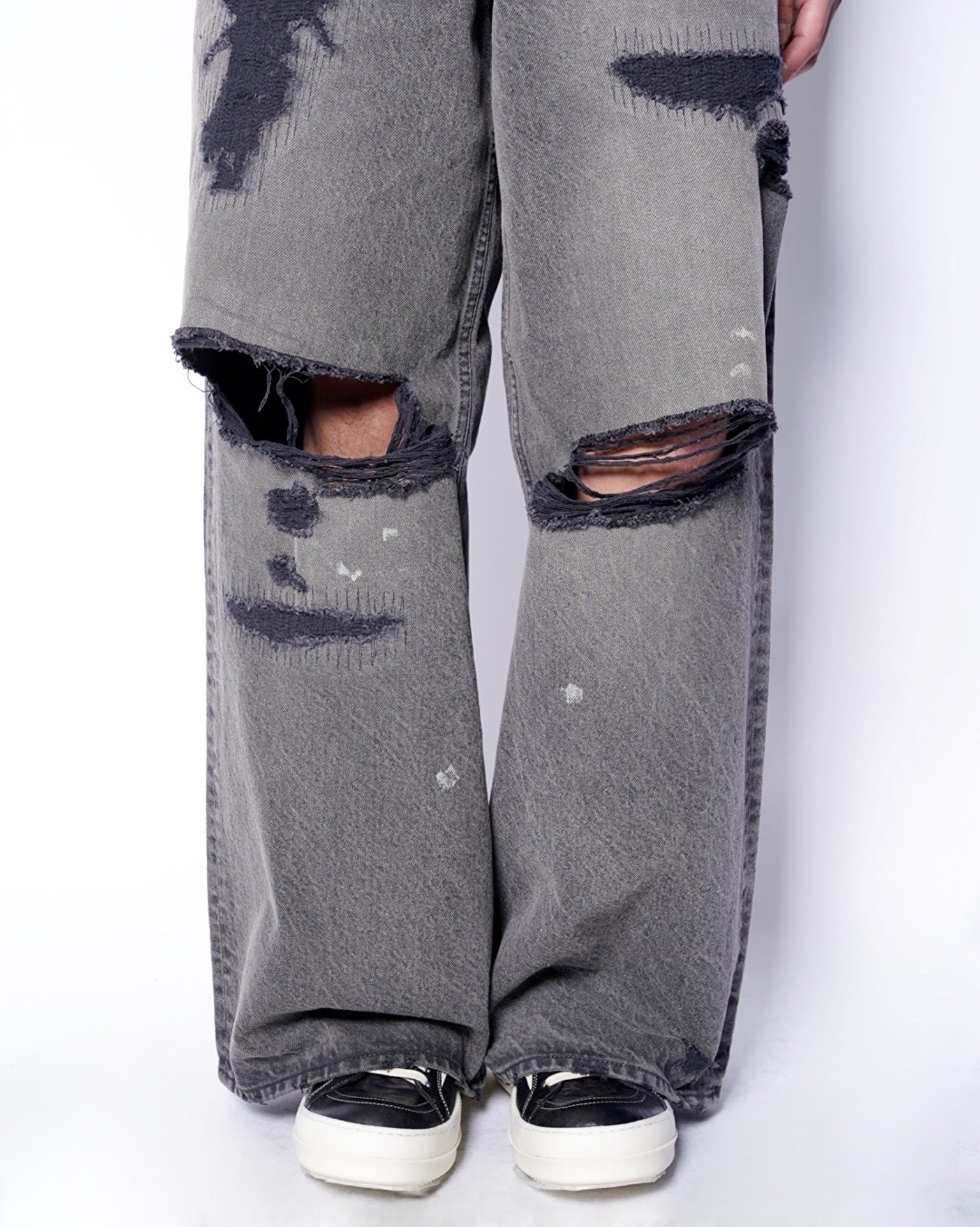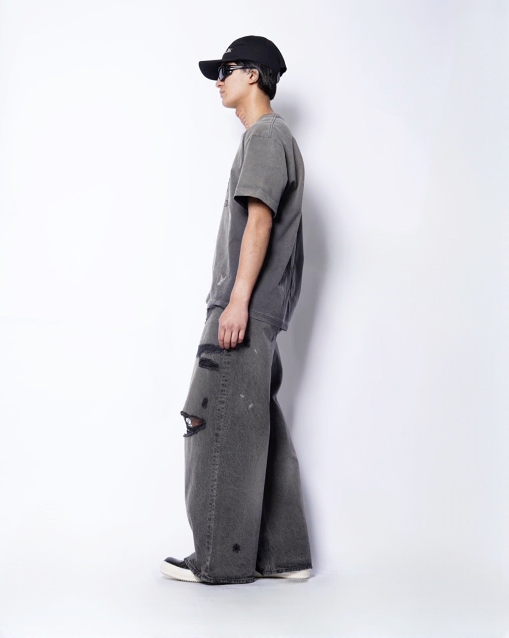 ユーズド加工を施したモデル。ブランドを代表するシグネチャーのバギーシルエット。