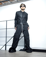 ・ Use a rugged, inorganic zip and a long drawcode around the waist to accent.