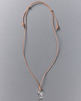 金属の冷たさと革の温もりが混ざり合う、無垢でありながらどこか芯の強さを感じさせる一品。