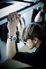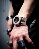 ・ The wide leather belt is also characteristic and further strengthens the profound feeling like a bangle.