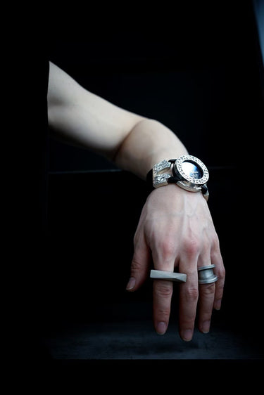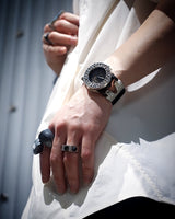 ・ The wide leather belt is also characteristic and further strengthens the profound feeling like a bangle.