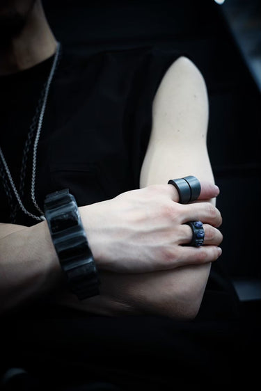 ・ Design that boasts a masterpiece presence while inorganic with a black ring that covers a large finger.