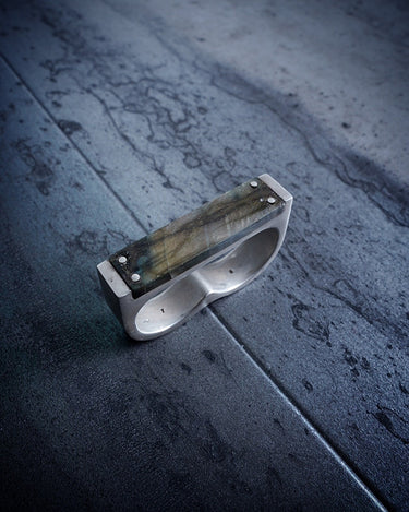 -The opaque and irregular Labradorite has a mysterious and harsh atmosphere.
