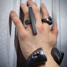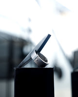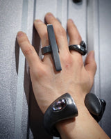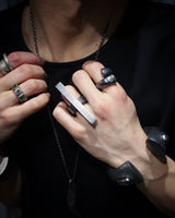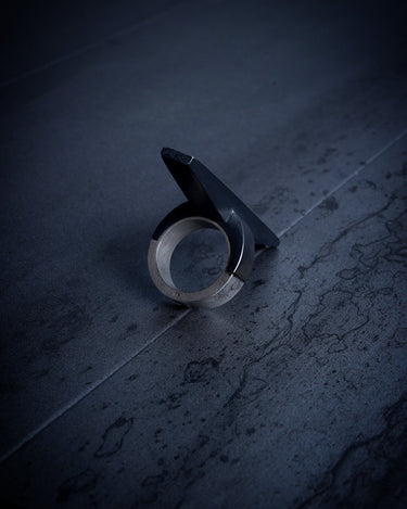 ・ The ring is made by combining two parts with a pin, and the contrast between black and silver is accented by the design.