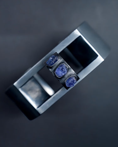 ・ The top is a tanzanite, and it has an irregular reflection of light and has a mysterious atmosphere by cutting the rough texture of the stone.