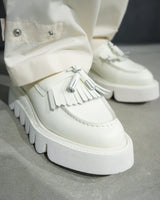 Quilt tassel mochacin shoes appeared.