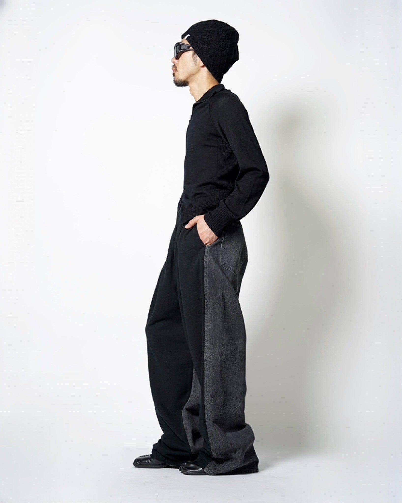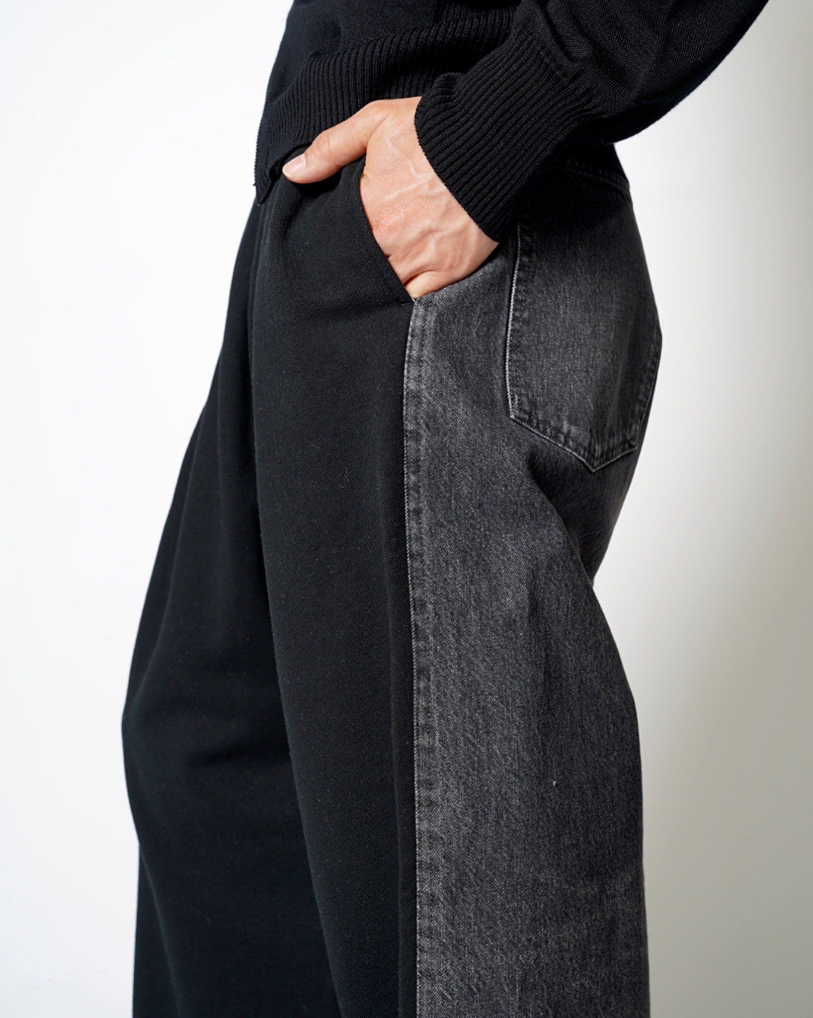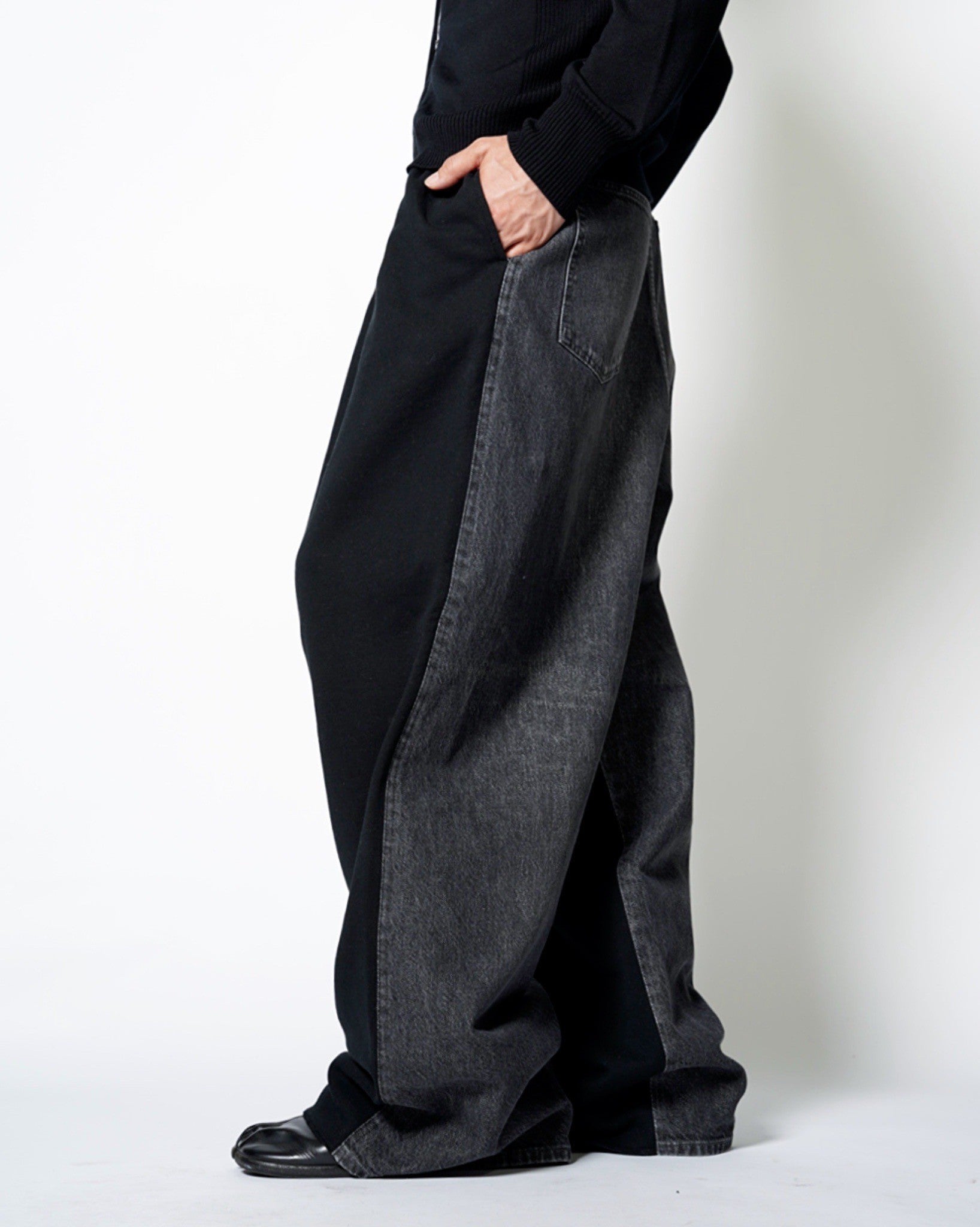 ・デニムとスエットのハイブリットパンツ。