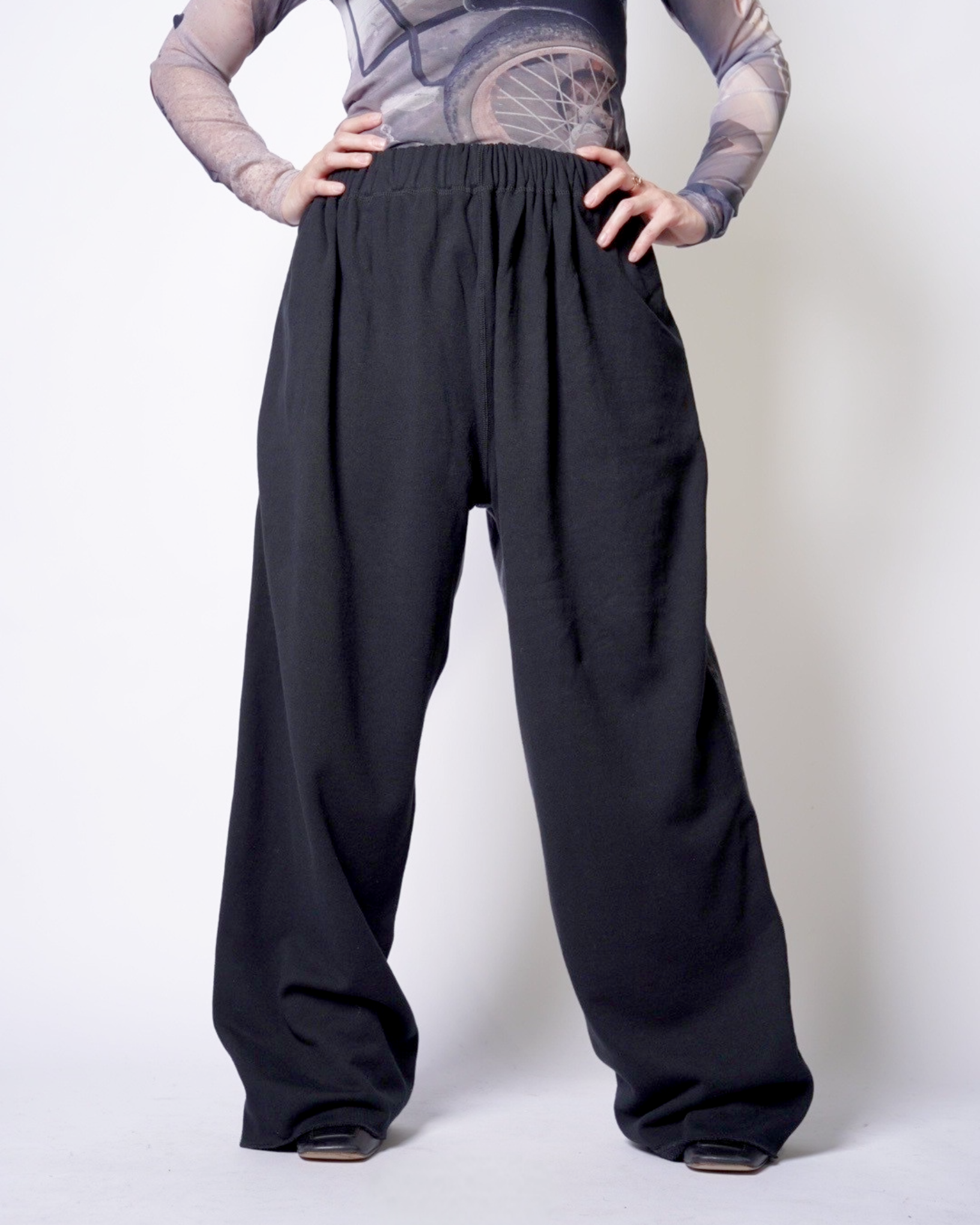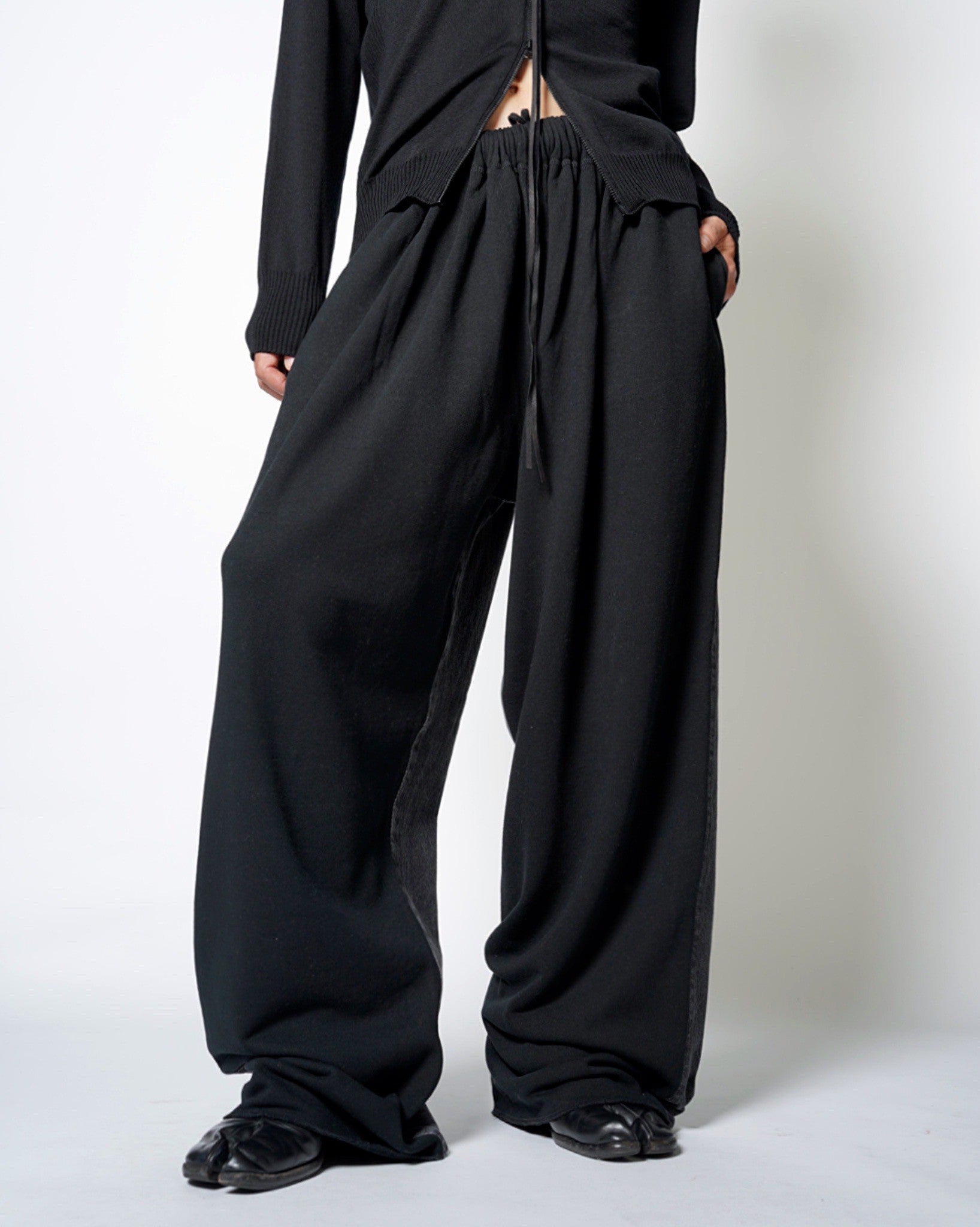 毛羽立ちの少ない表面感によりカジュアルさを抑えた生地感。裏毛パイルで厚過ぎないスウェットでシーズンを問わずに穿いていただけます。
