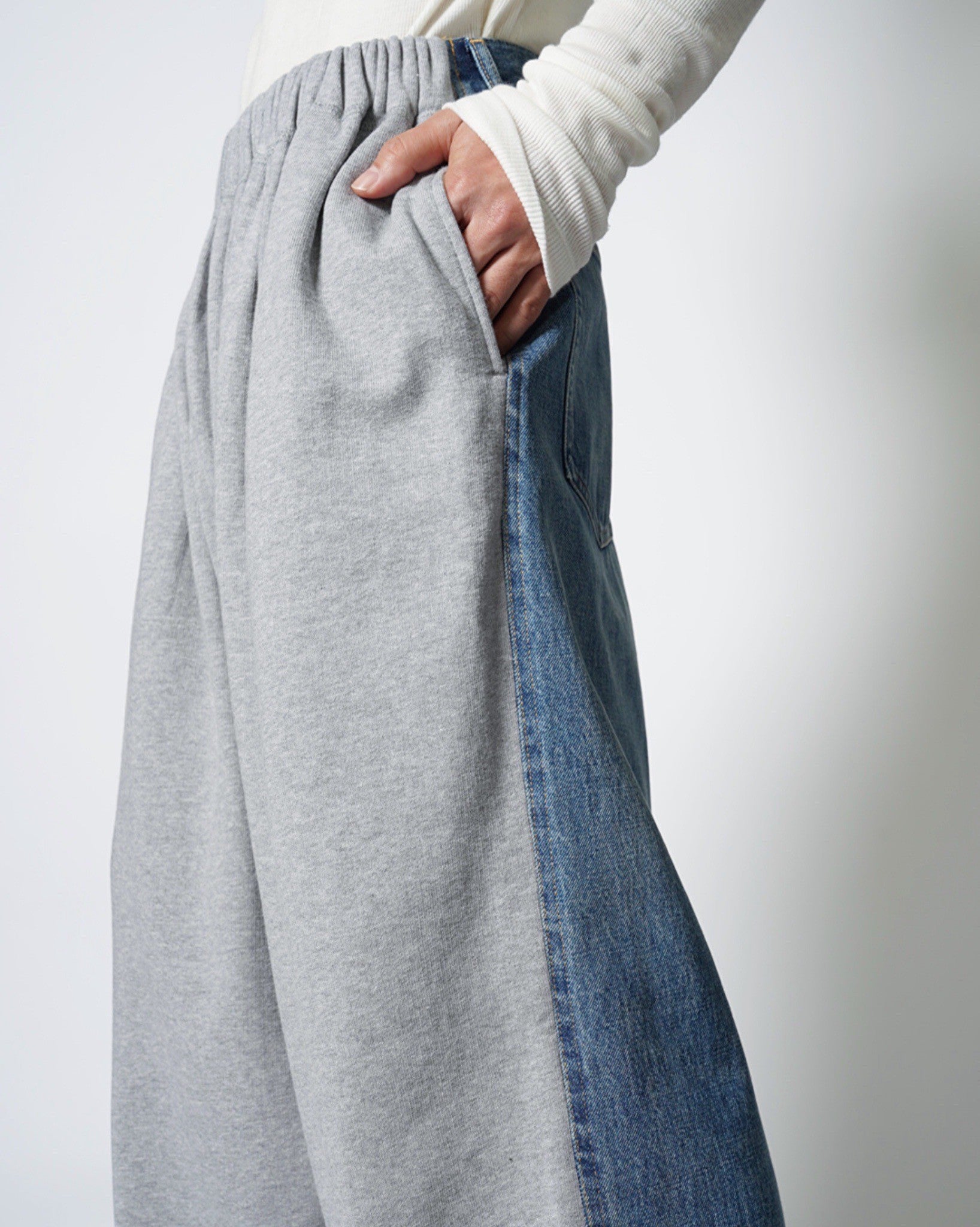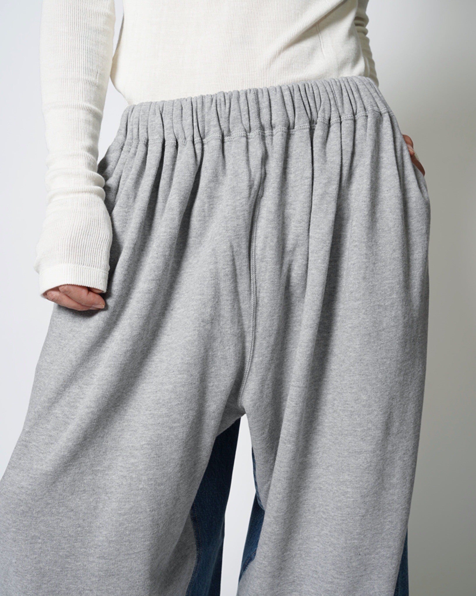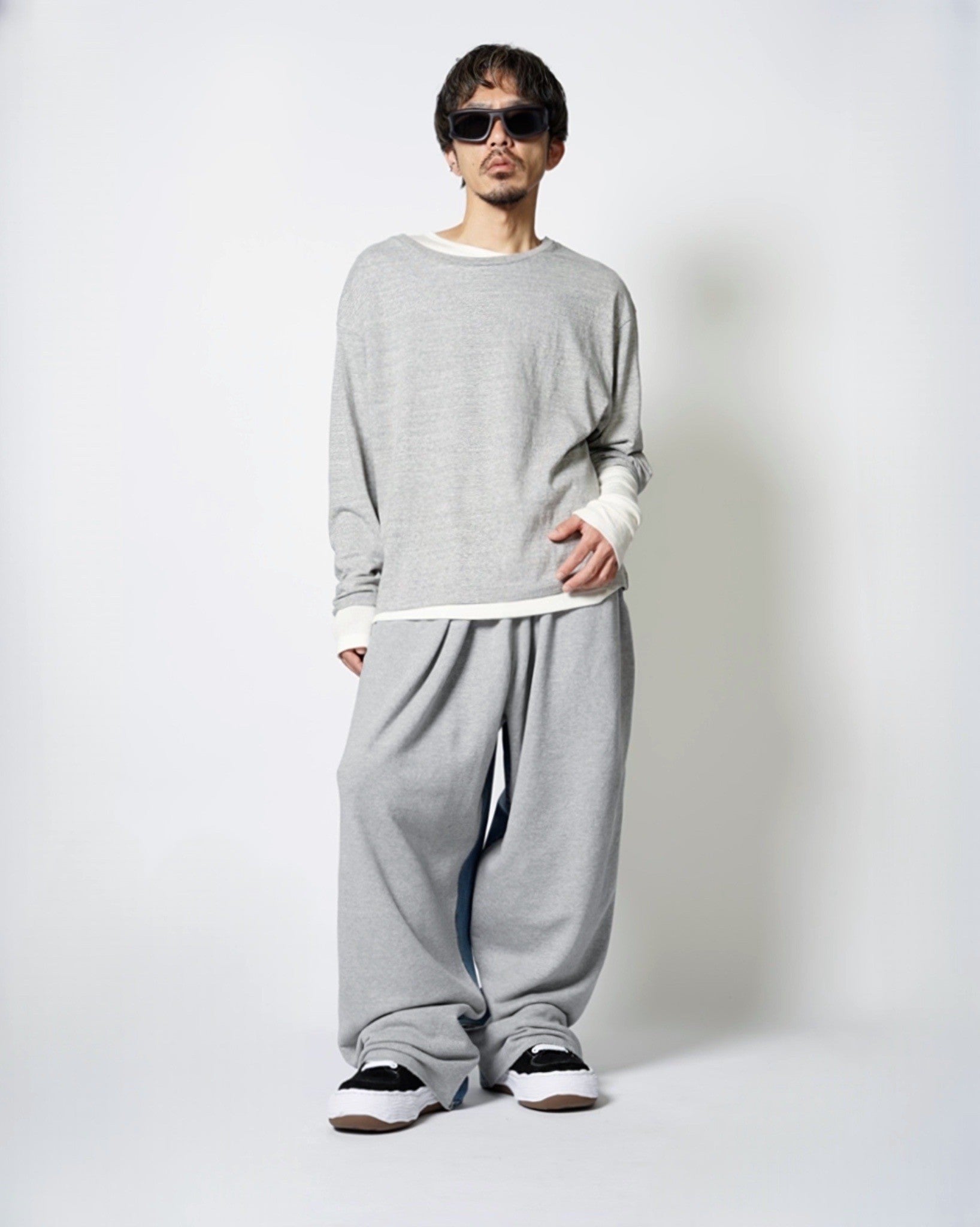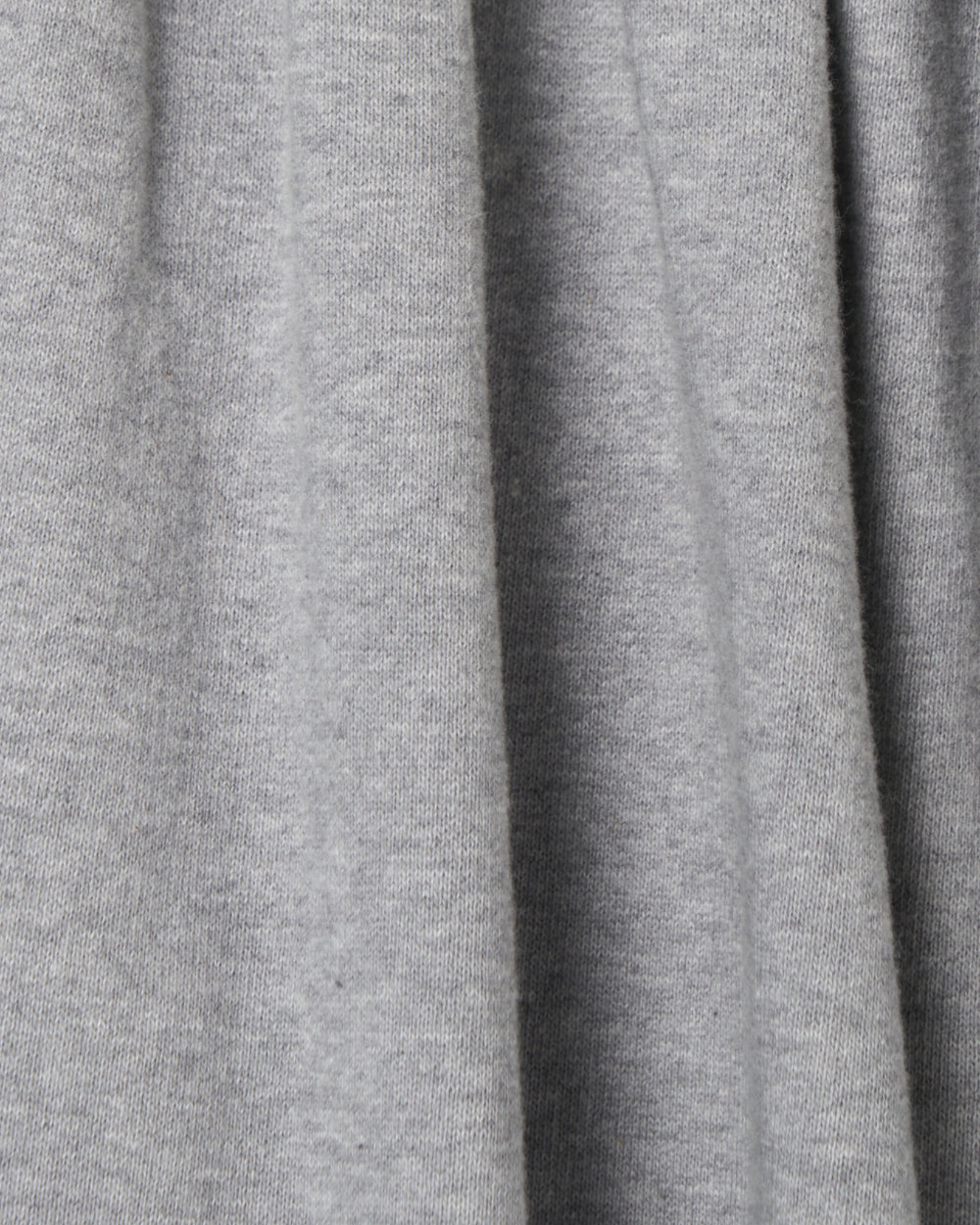 毛羽立ちの少ない表面感によりカジュアルさを抑えた生地感。裏毛パイルで厚過ぎないスウェットでシーズンを問わずに穿いていただけます。