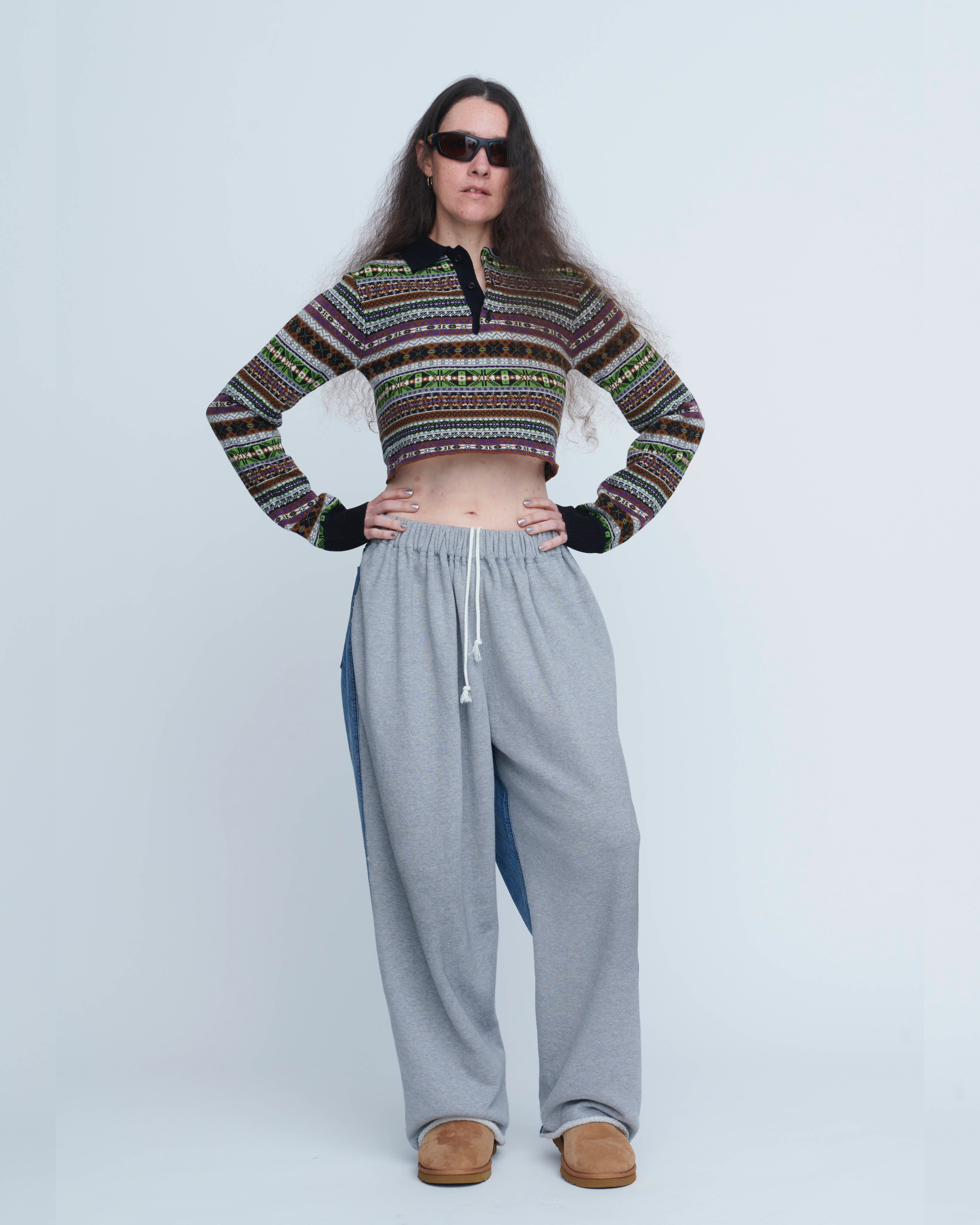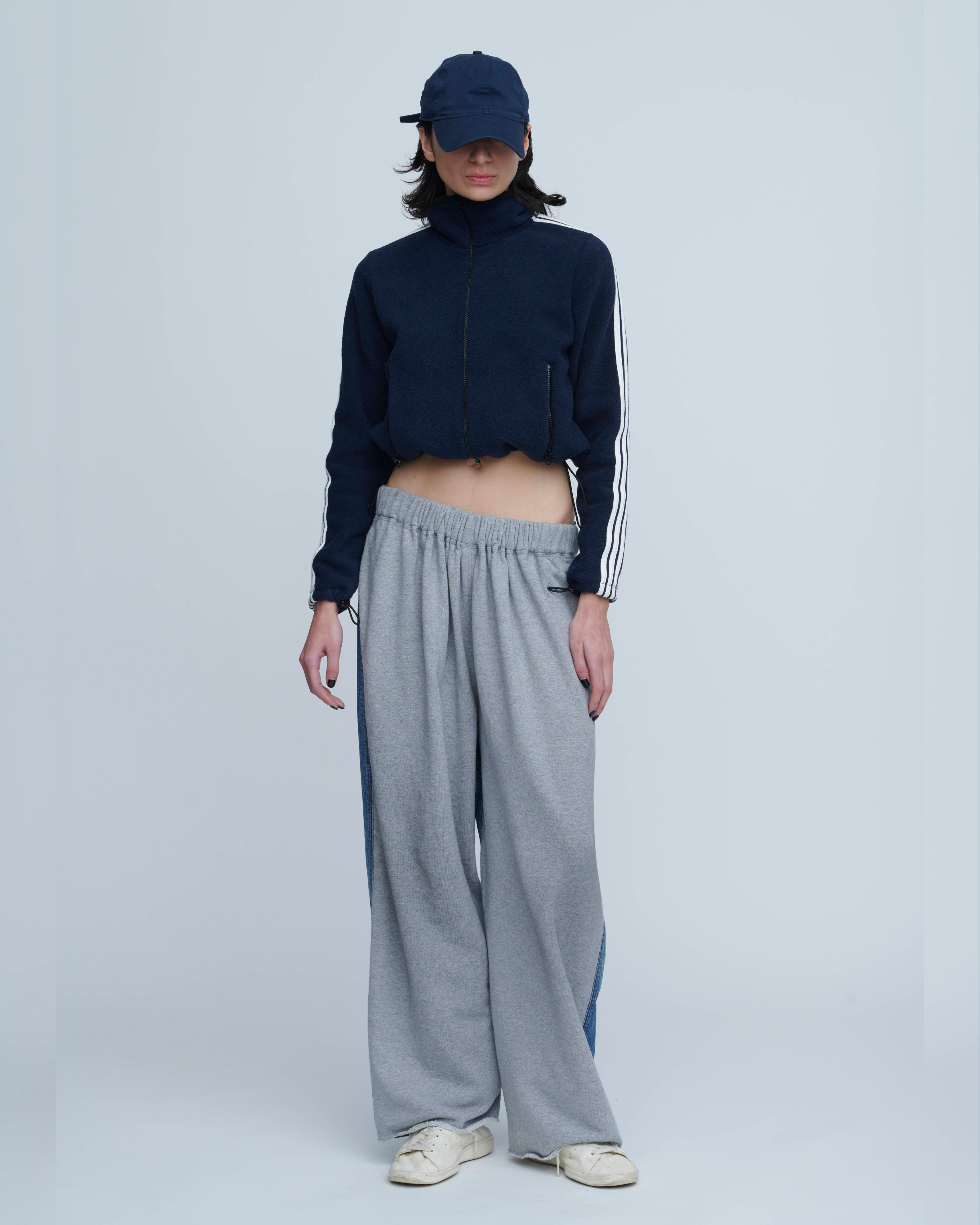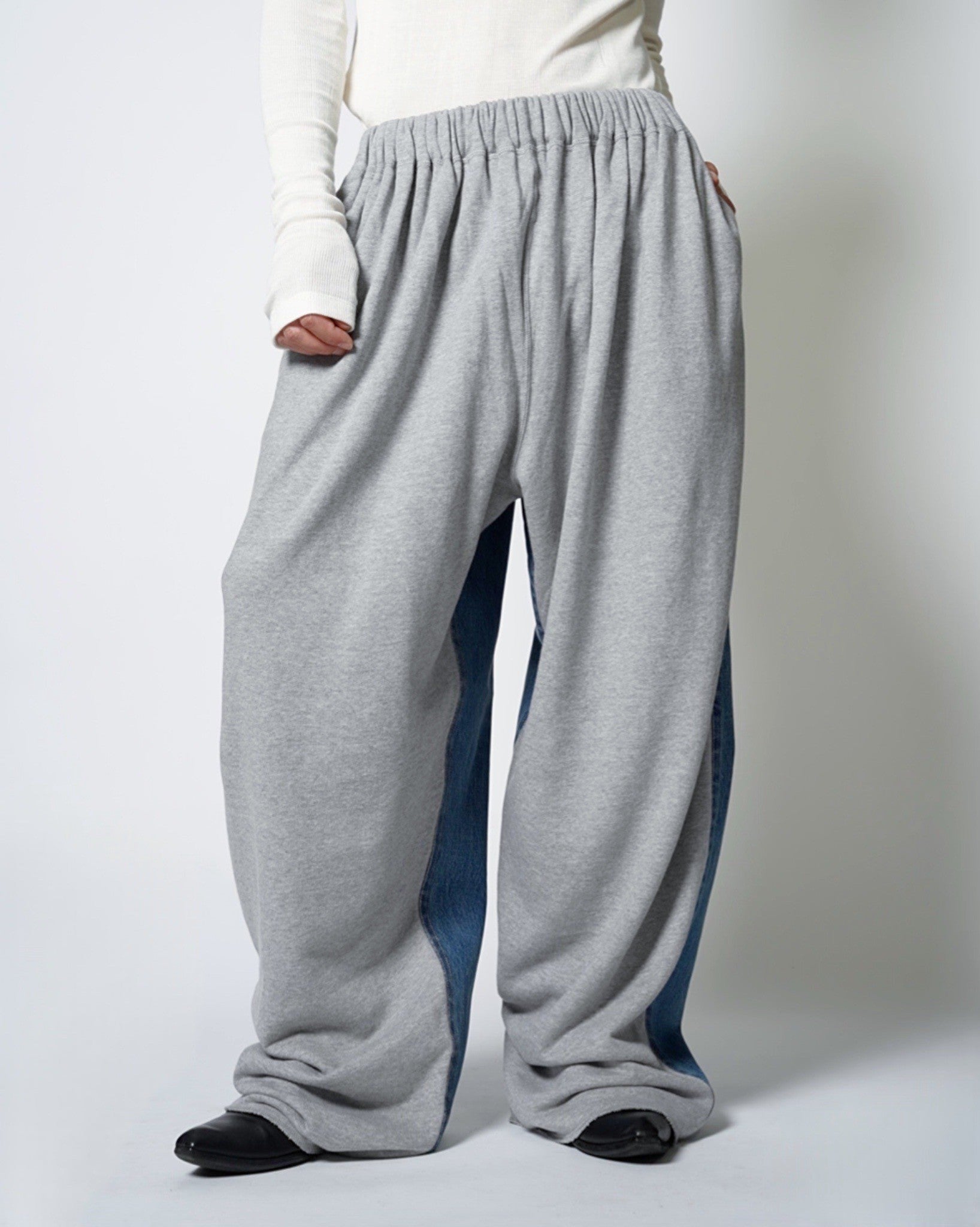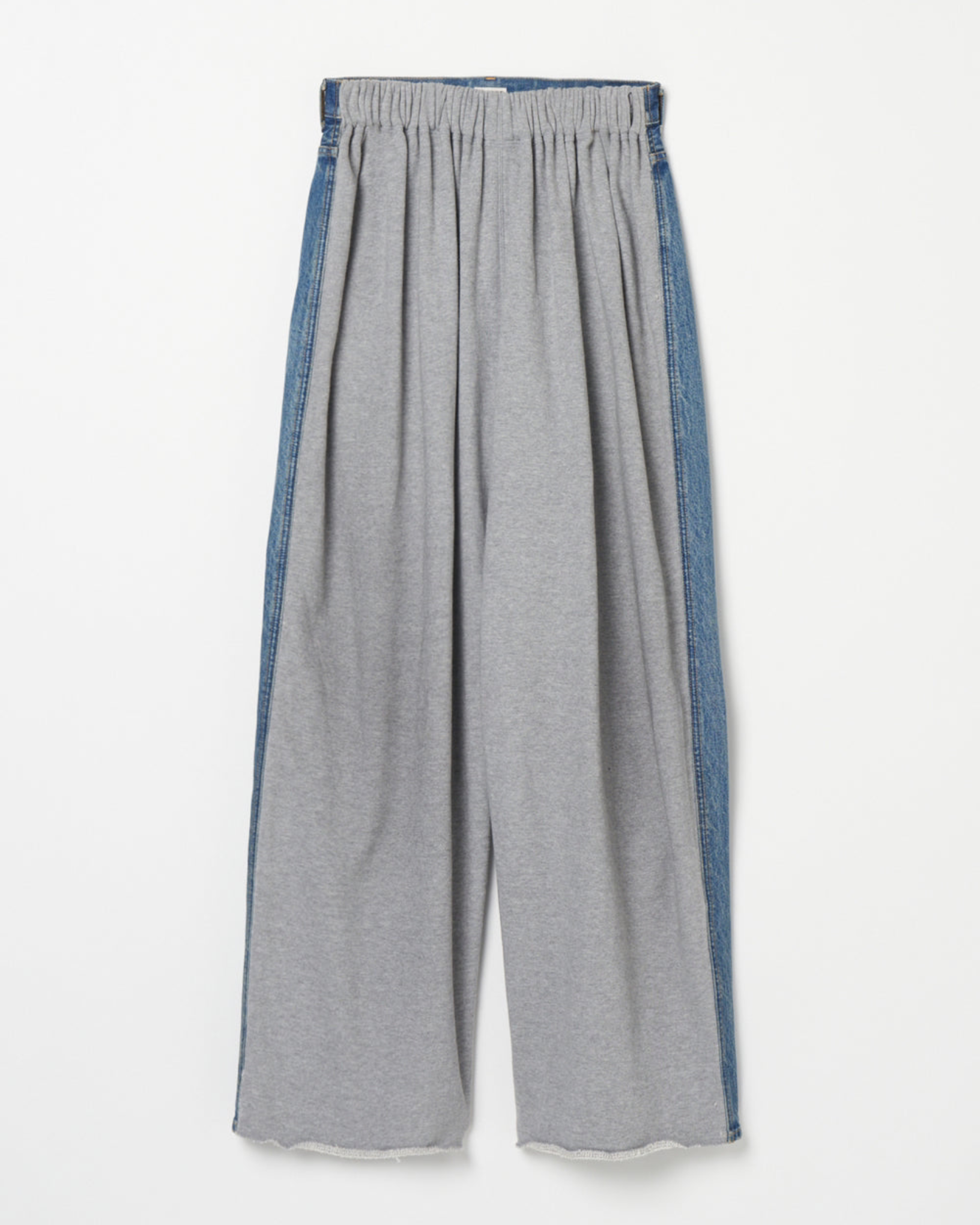 毛羽立ちの少ない表面感によりカジュアルさを抑えた生地感。裏毛パイルで厚過ぎないスウェットでシーズンを問わずに穿いていただけます。
