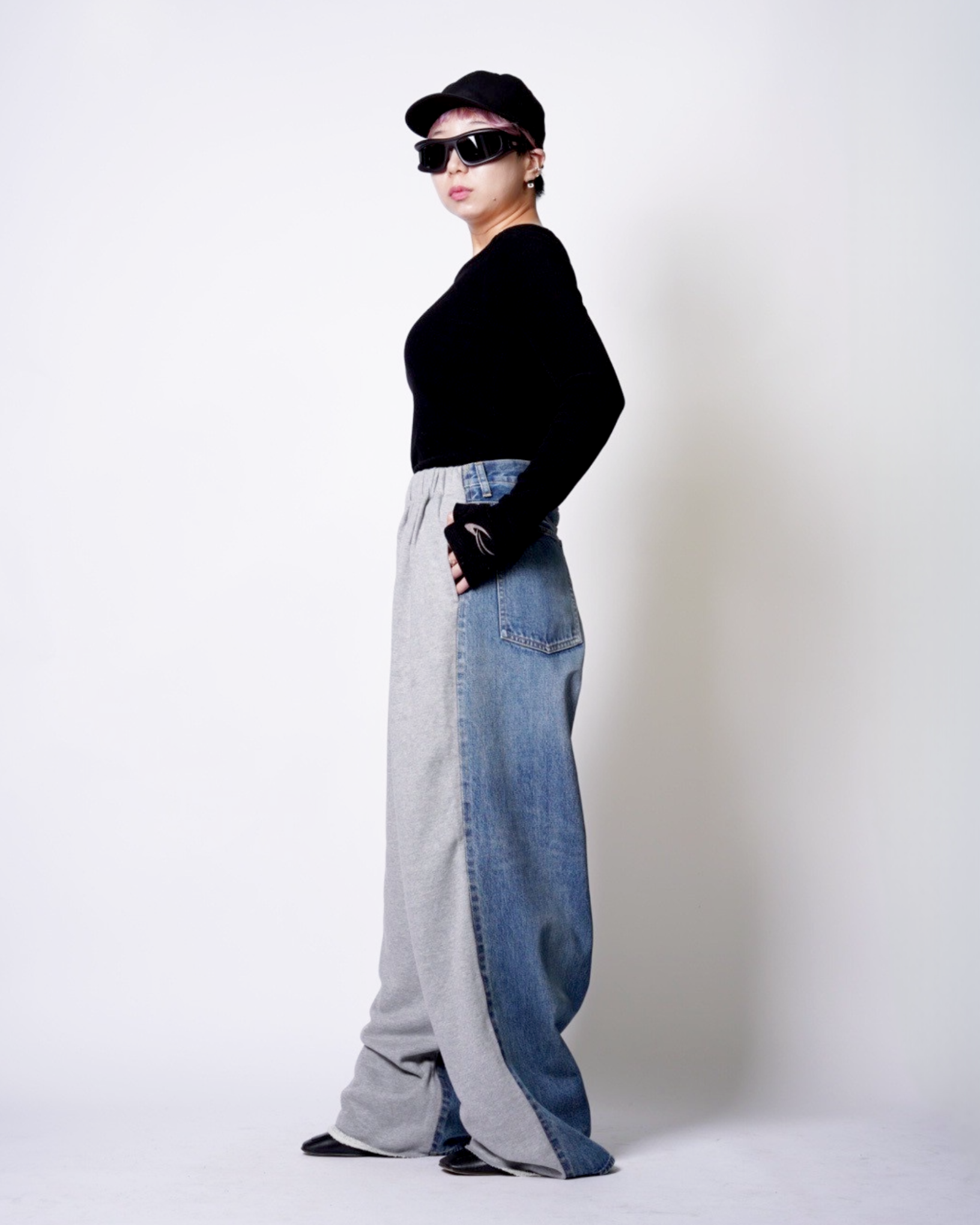 ・ライトオンスのデニムを使用しているので軽く、ワイドシルエットで締め付け感がなくリラックスした履き心地。