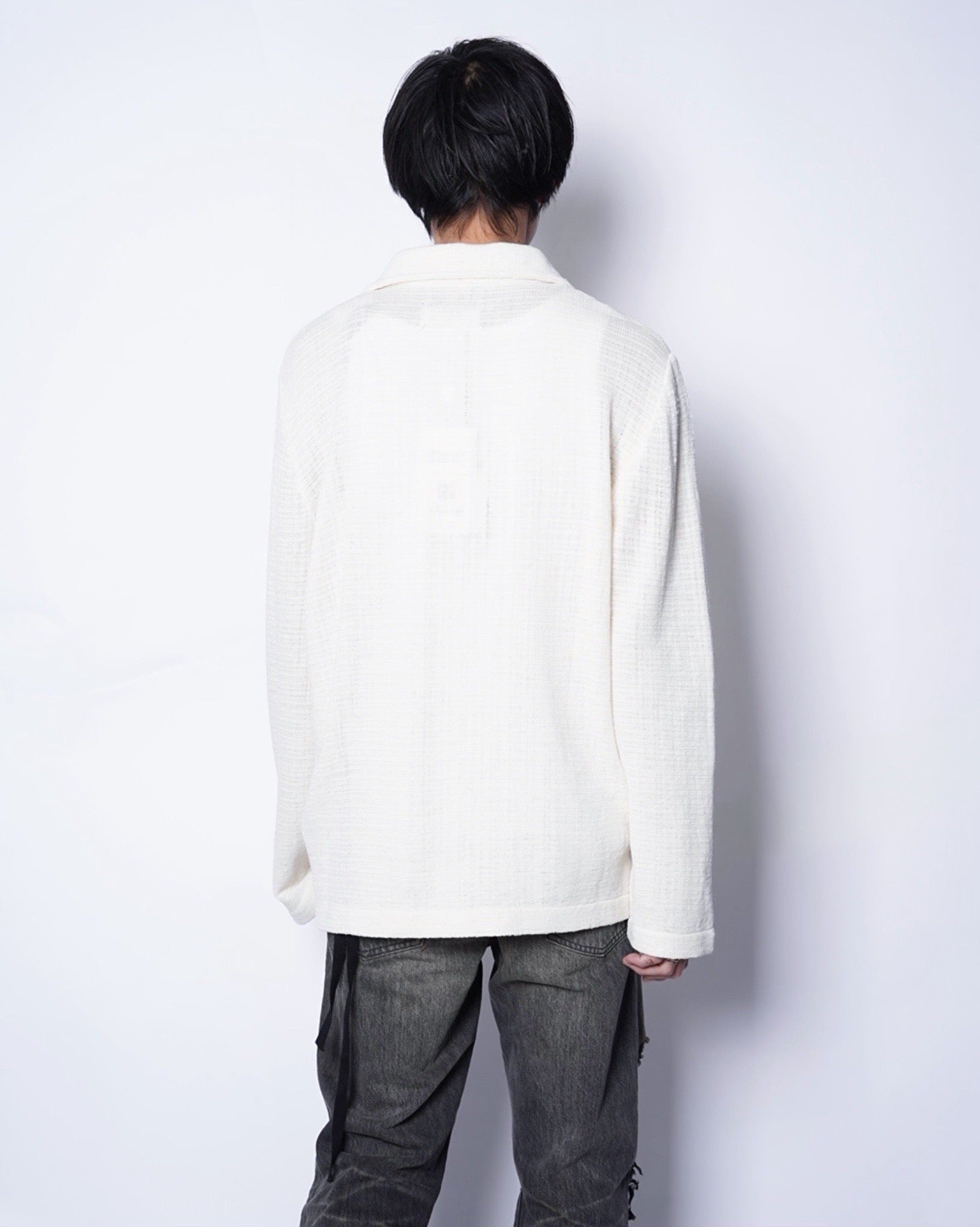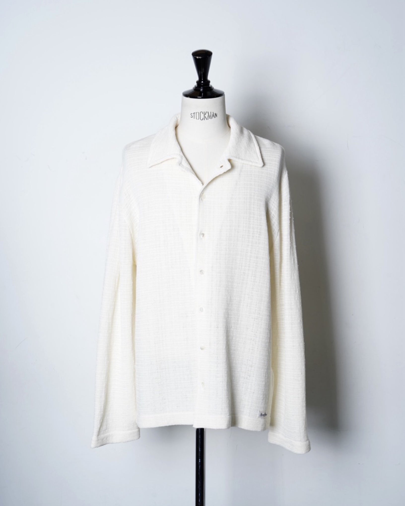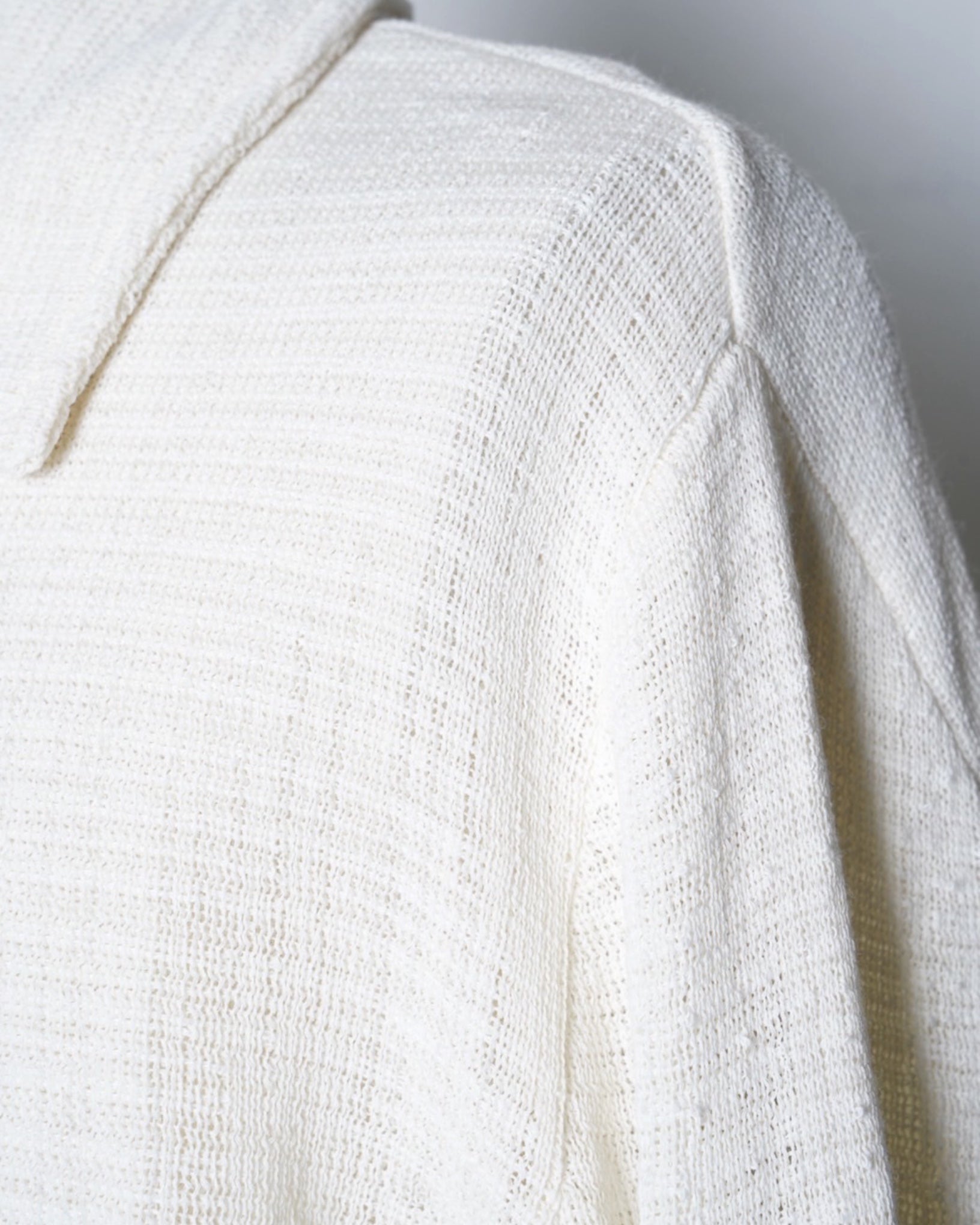 ・緩やかな編立とリュクスなエクリュカラーによるシャツカーディガンとなっており、こなれたリラックス感の中に優美さや端正さを内包した一着に。