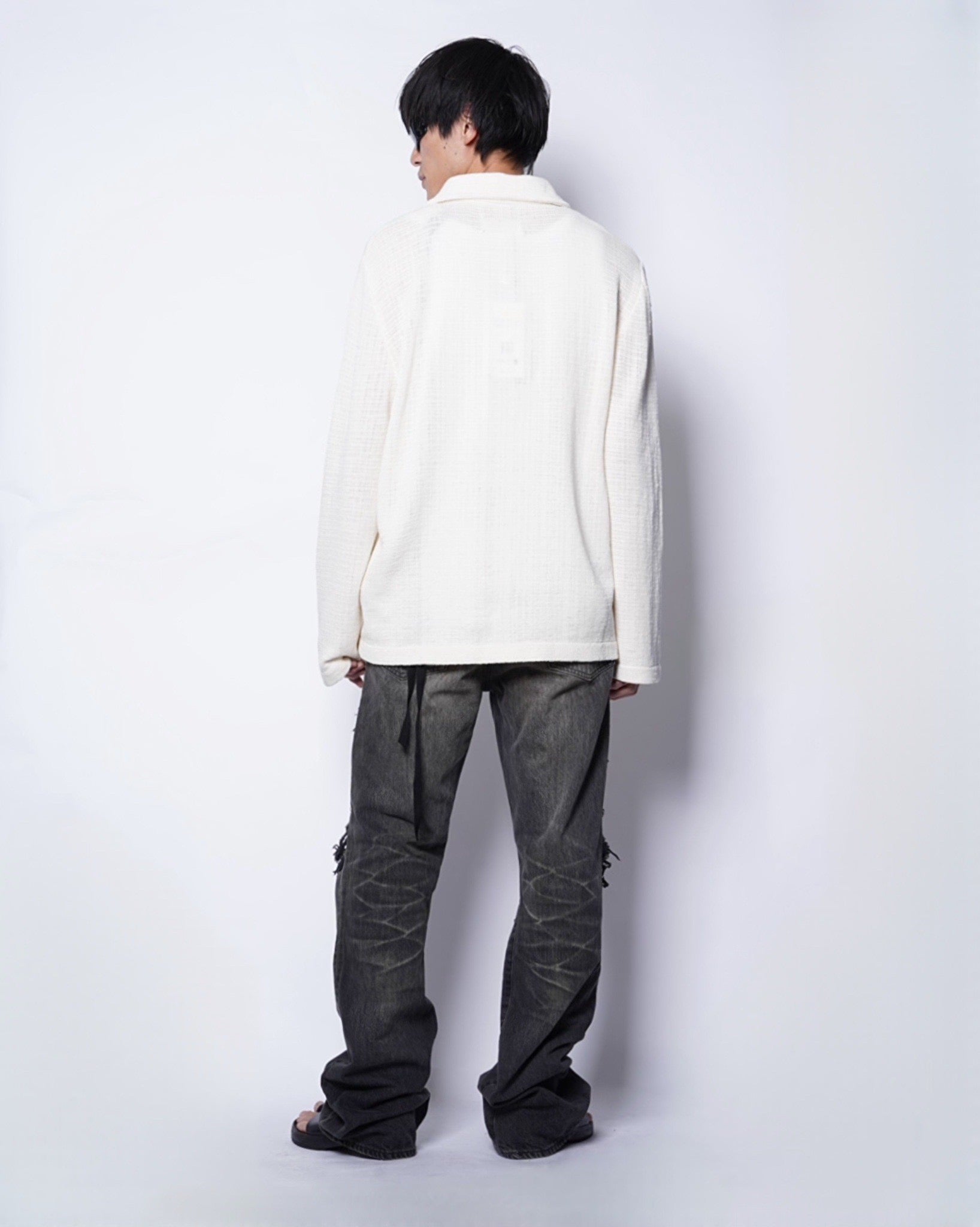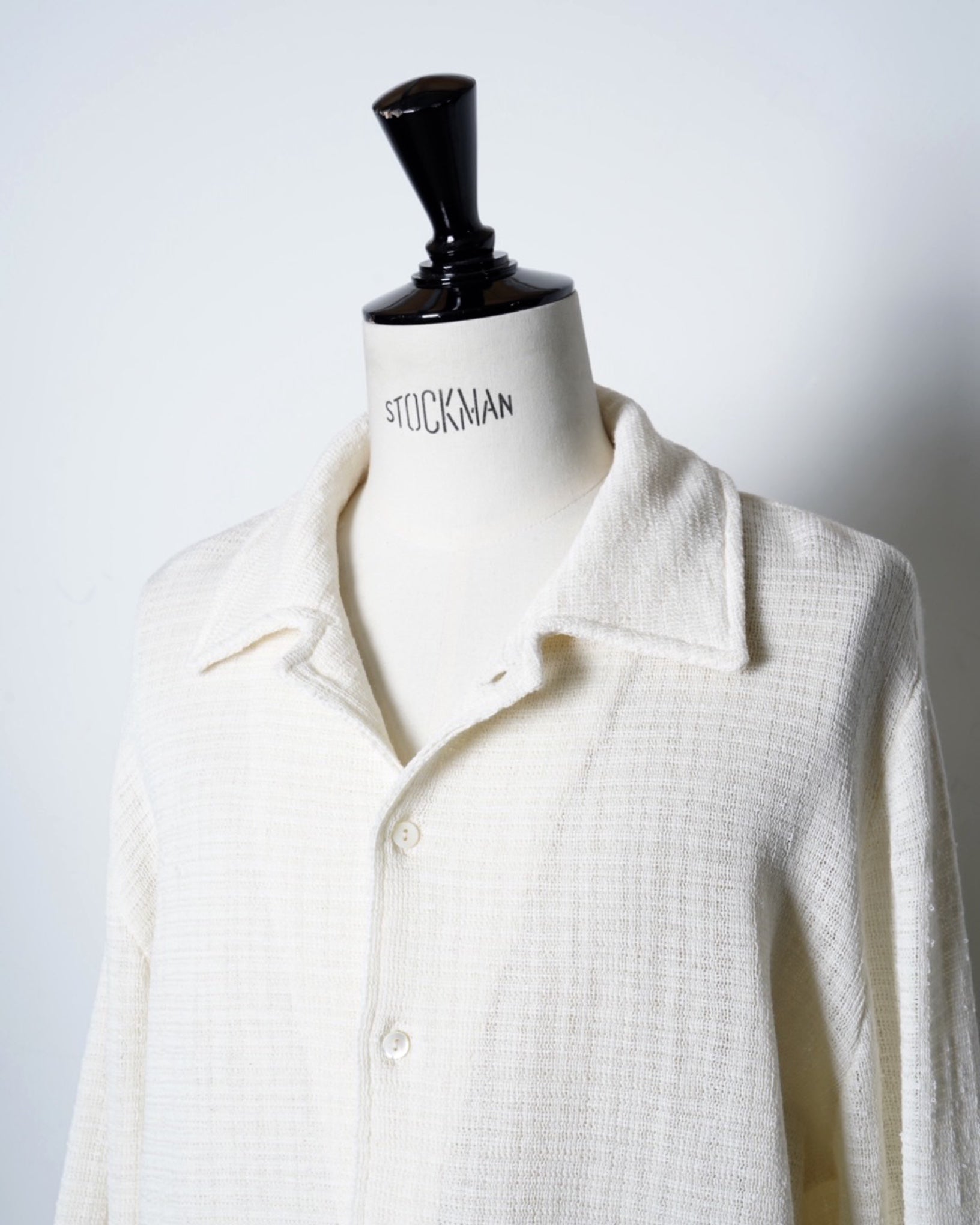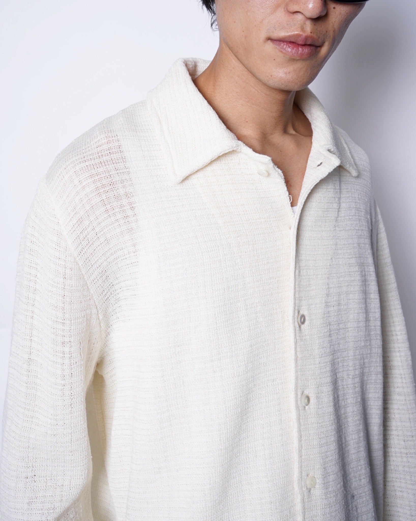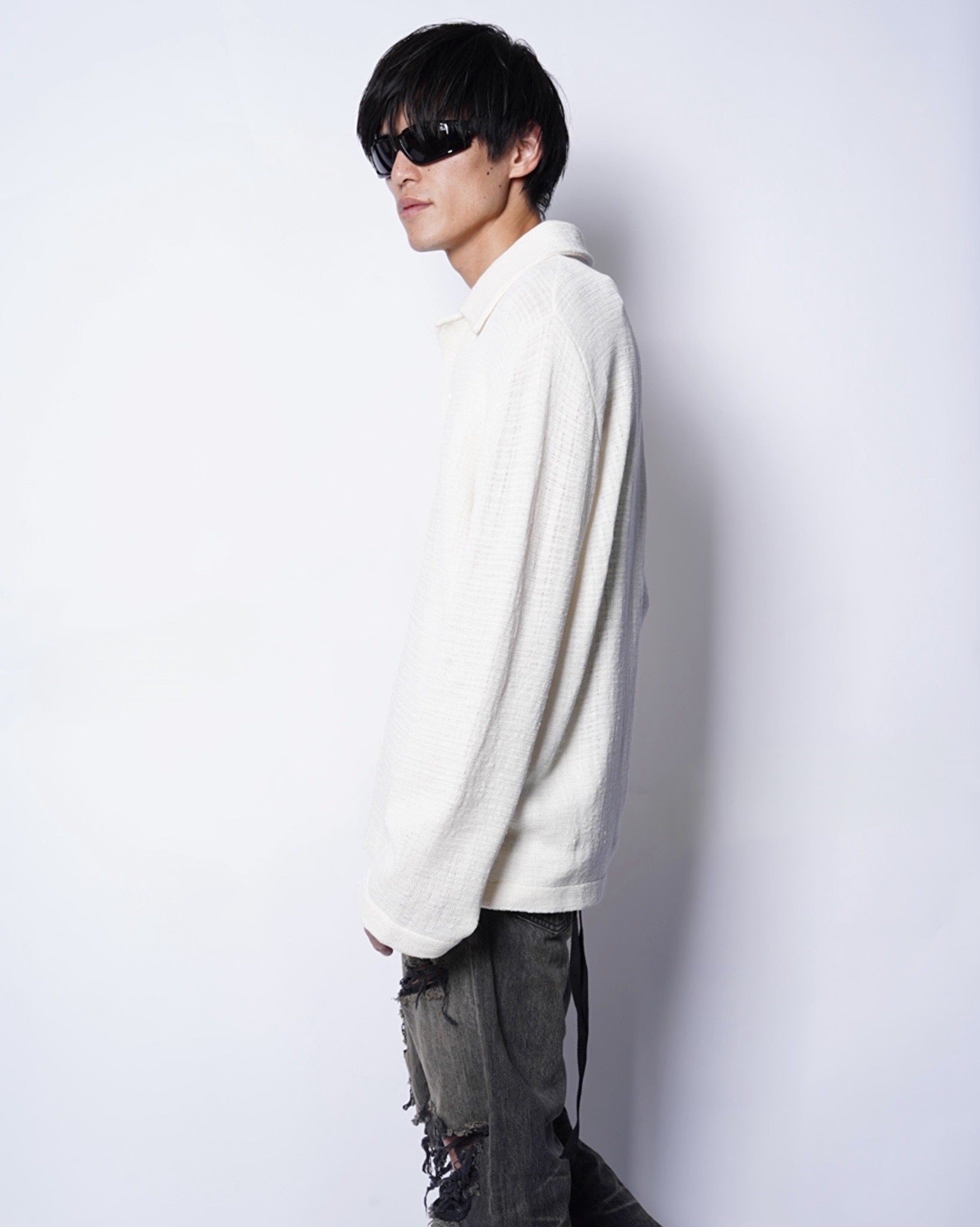 ・緩やかな編立とリュクスなエクリュカラーによるシャツカーディガンとなっており、こなれたリラックス感の中に優美さや端正さを内包した一着に。
