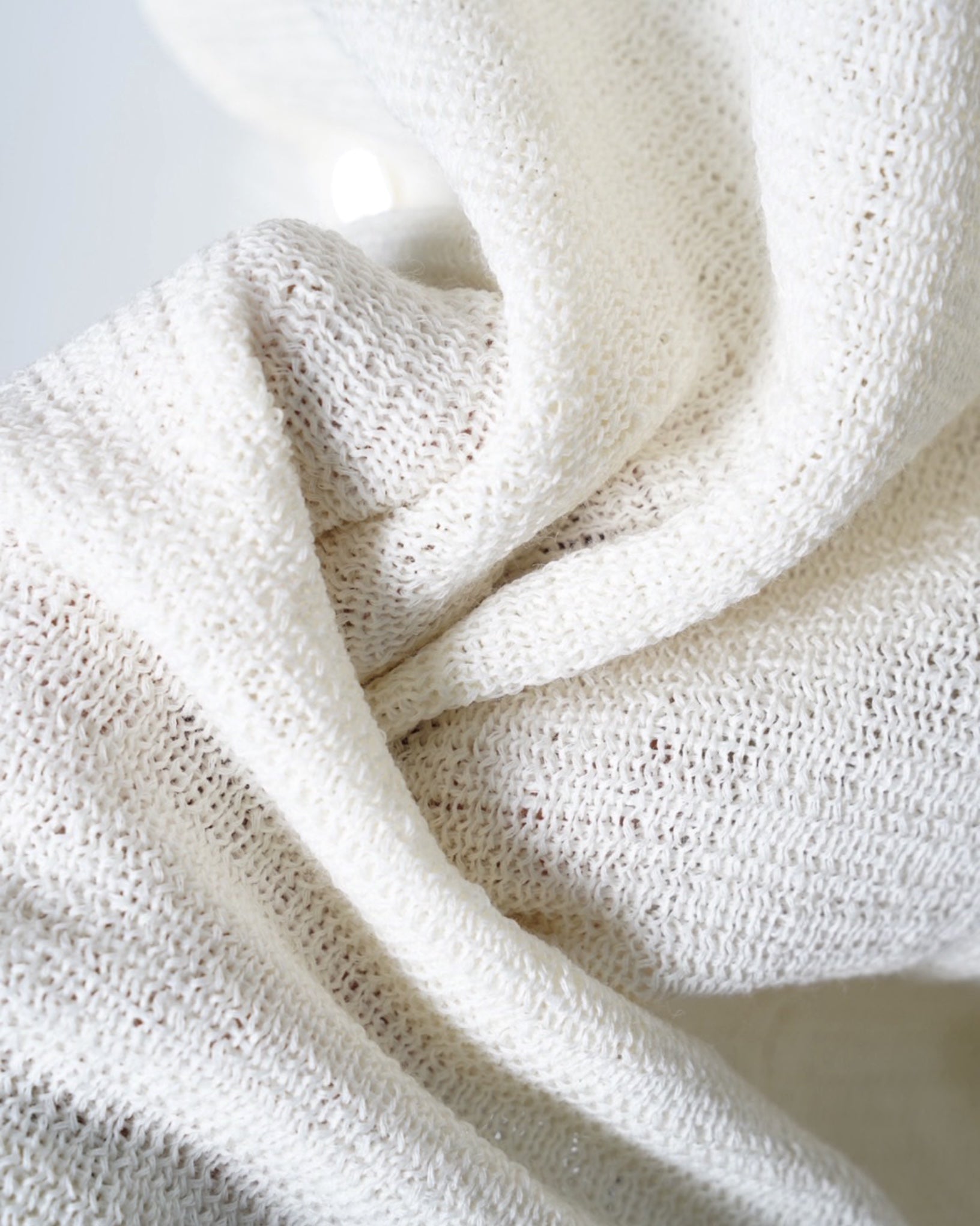・緩い編立でナチュラルな透け感のあるテキスタイルとなっており、リラックス感のある質感。