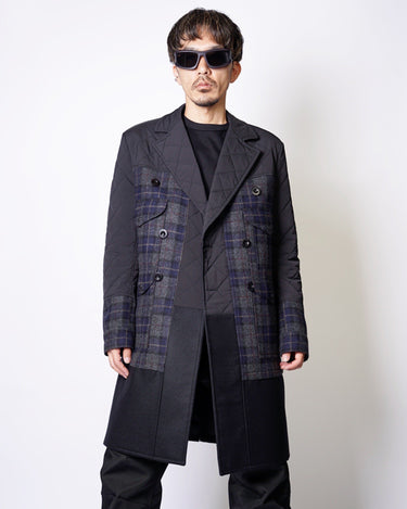 ・1914年に特許を取得した、アイコニックなマッキーノクルーザージャケットをコートにドッキングした、JUNYA WATANABE MANらしい再構築的デザイン。