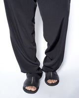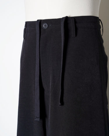 ・ウエストは広めにとっていて、ドローコードを強く絞って穿くことでドレーピーなギャザーを作り出します。