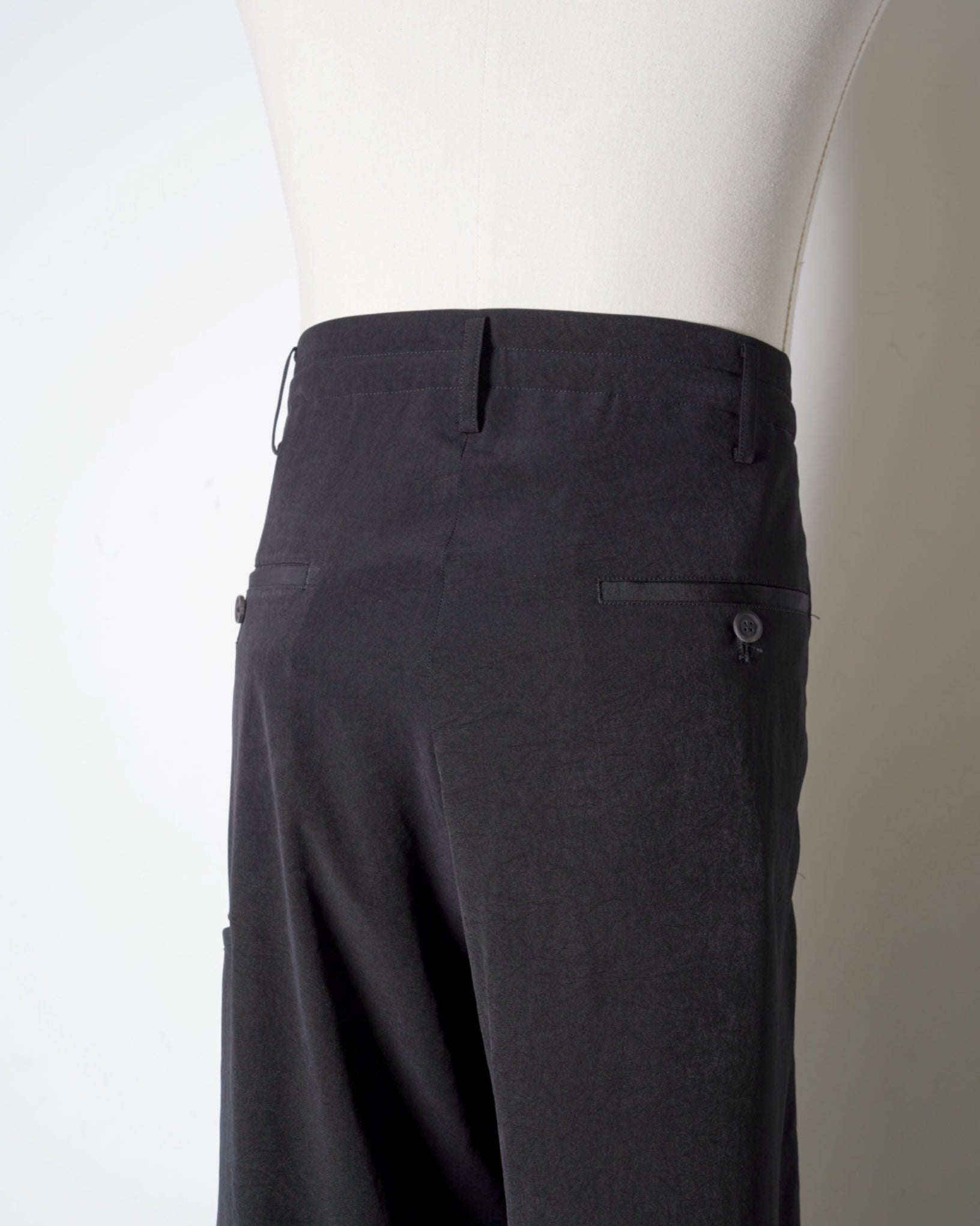 ・癖のないデザインのパンツながら流麗なドレープが特徴の造形とシックな素材使いにより、一目でYohji Yamamotoと分かるほどにアイコニックな仕上がりです。