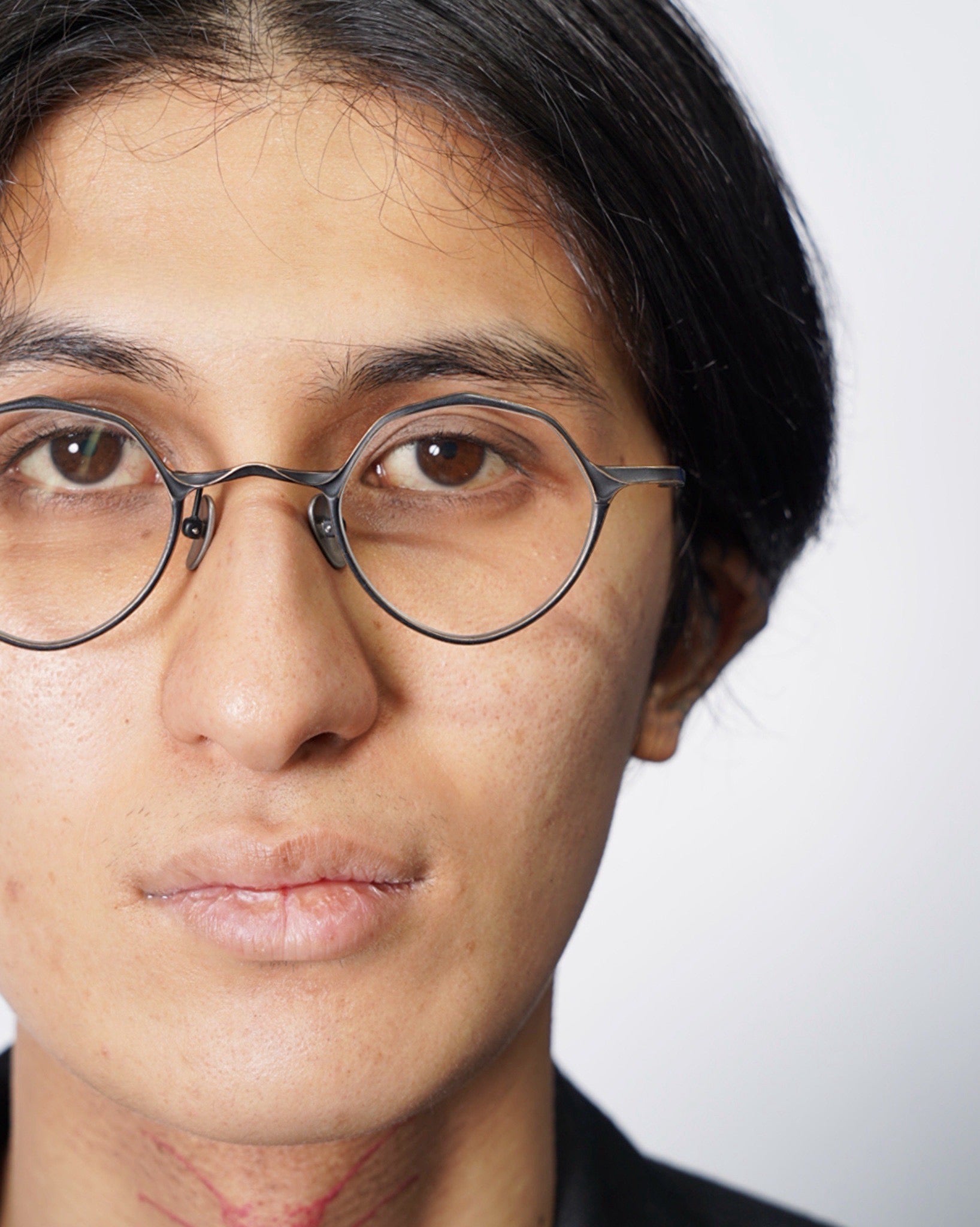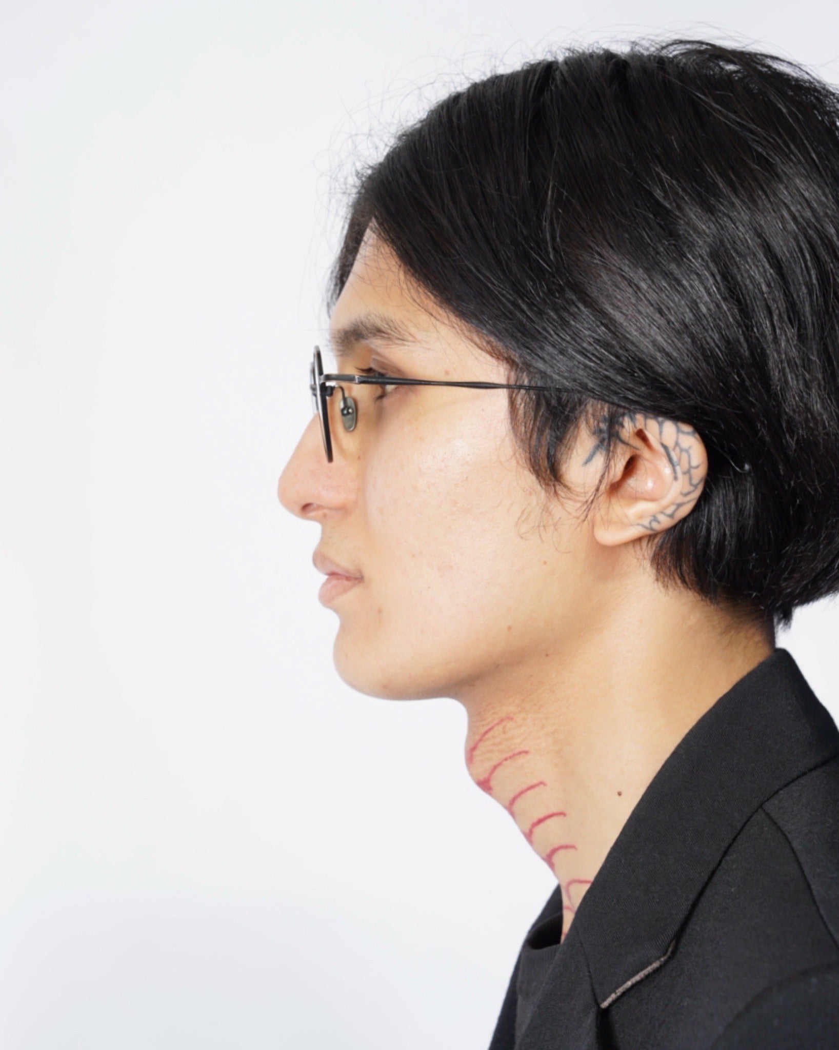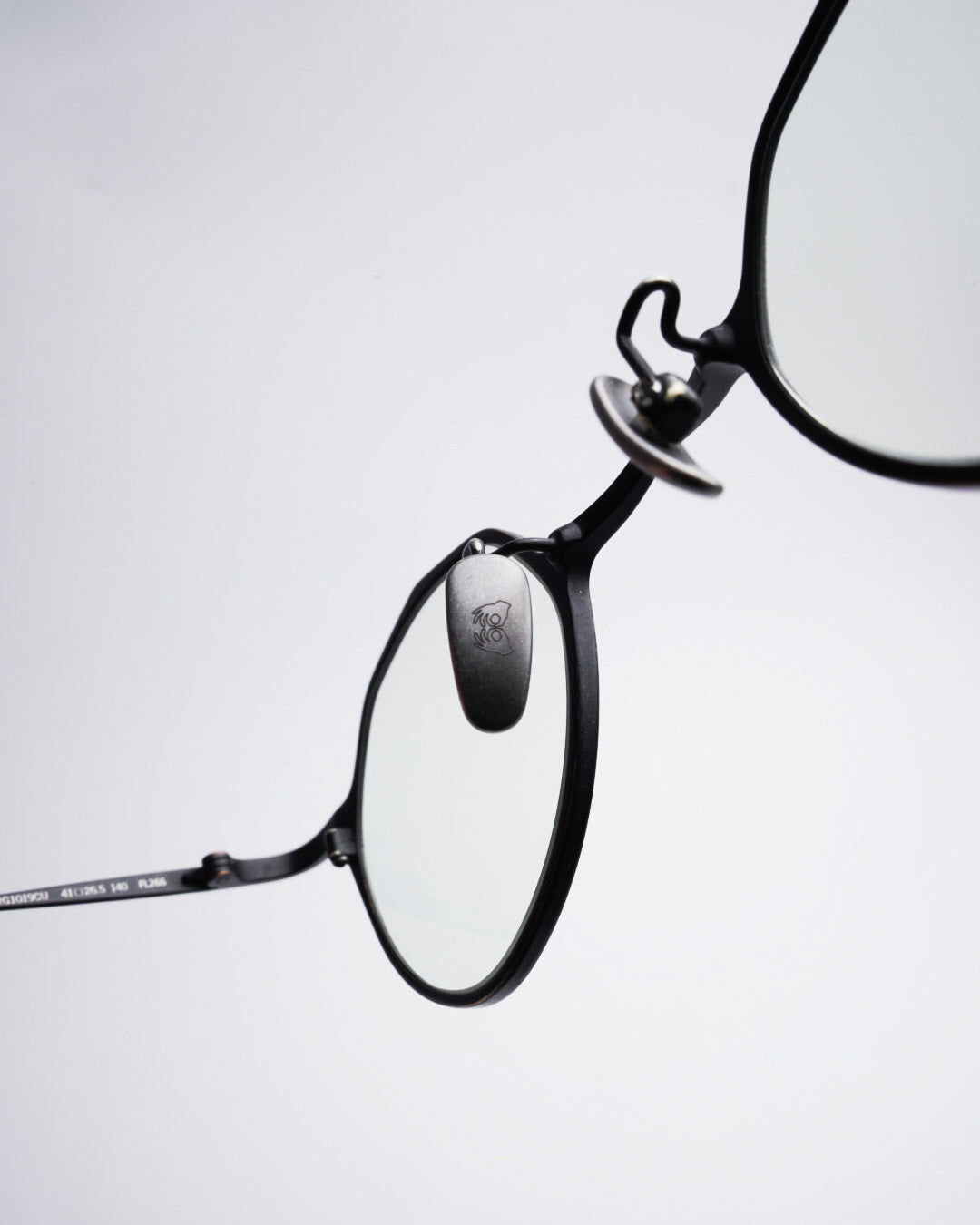 表面加工を施し、立体的でエッジの効いたカッティングのフレームとなっており、重厚的でアーティザナルな印象に。