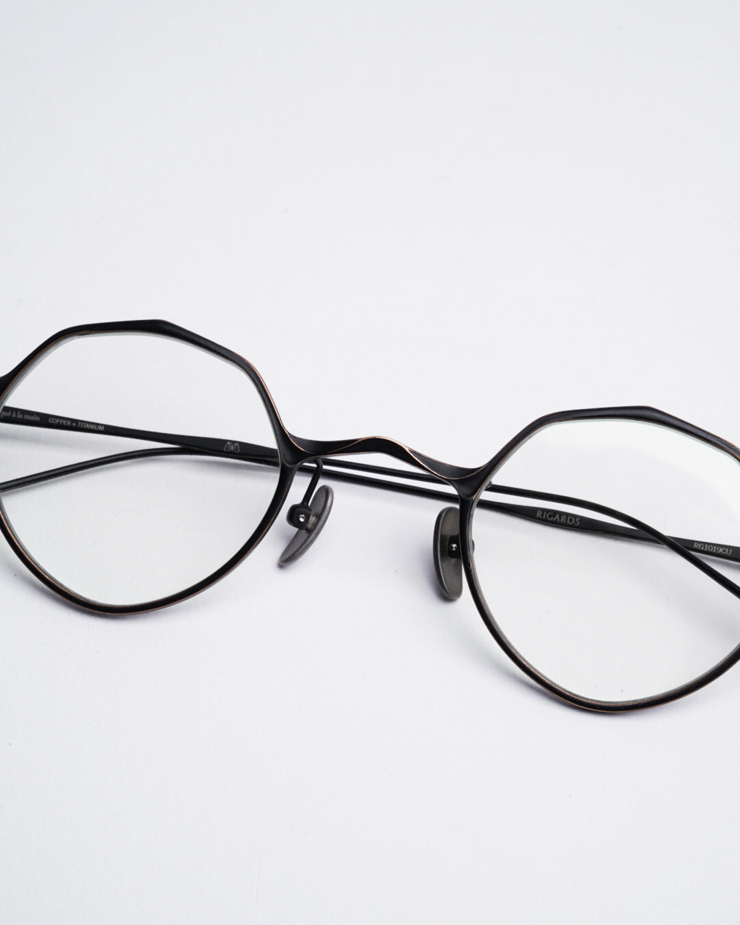 やや小ぶりなオーバルタイプの玉形となっておりクラシカルで知的な印象も感じられながら、RIGARDSらしいアヴァンギャルドでモダンなニュアンスも程よく感じられます。