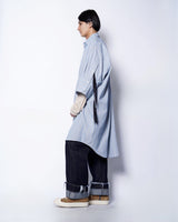 ・またフロントを閉めるとシルエットと丈感がチュニックのようになり、フェミニンな印象でも着ていただけます。