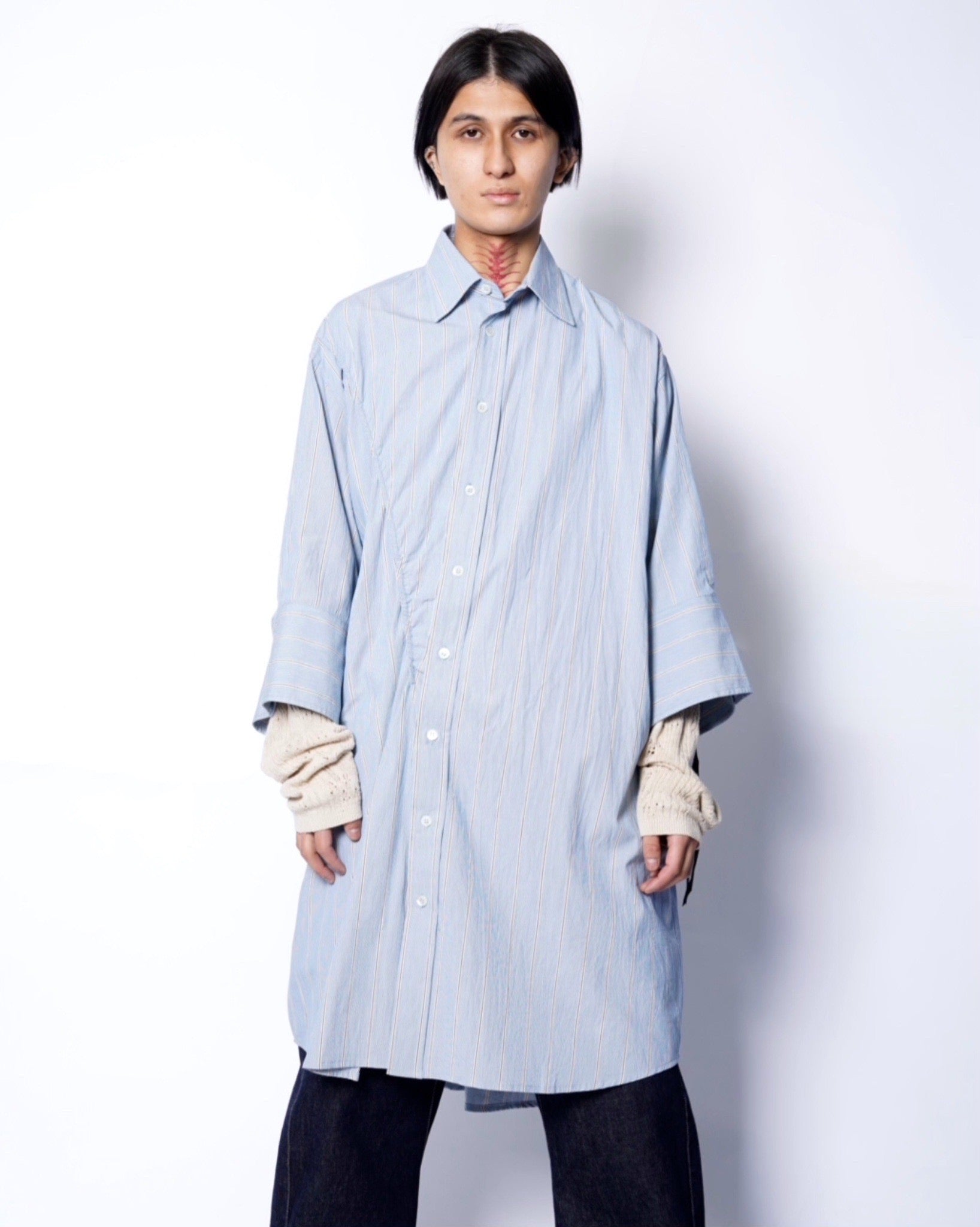 "M.Y. TWISTER L Draped long shirt -STRIPE-